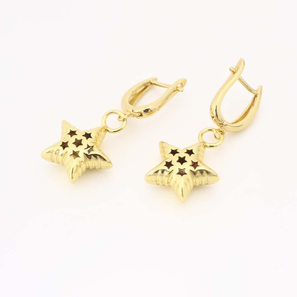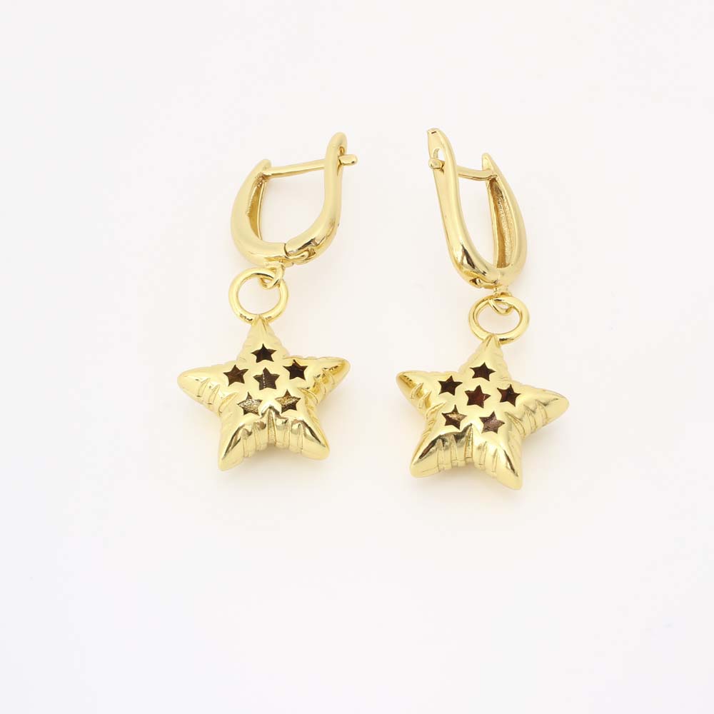 Boucles d'oreilles pendantes en laiton, étoile, bijoux de mode & pour femme, doré, Vendu par paire