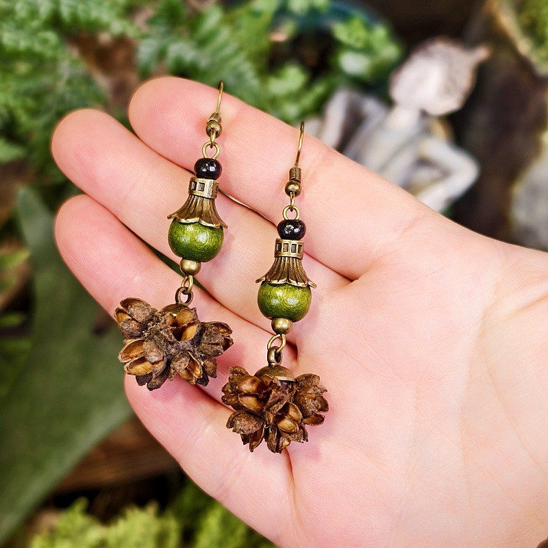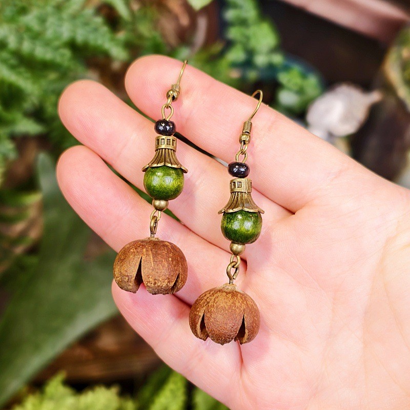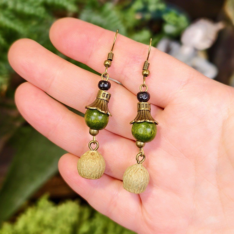 Boucles d'oreilles pendantes en laiton, avec bois, bijoux de mode & pour femme, Longueur Environ 6 cm, Vendu par PC
