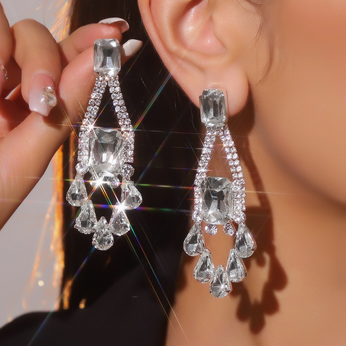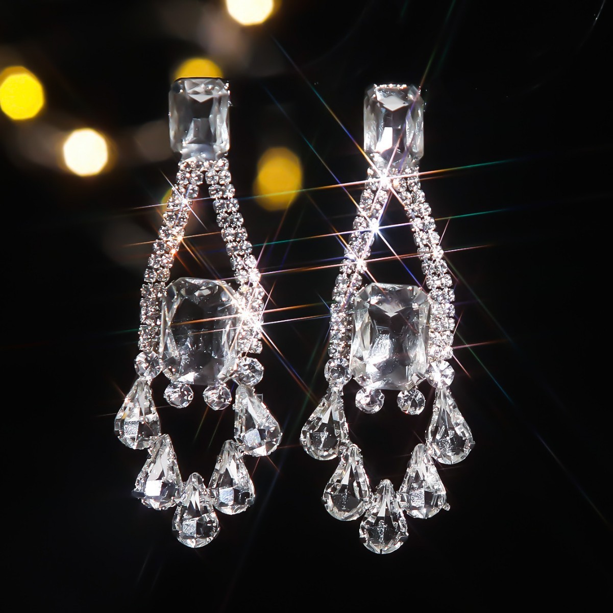 Boucles d'oreilles pendantes en laiton, bijoux de mode & pour femme & avec strass, Vendu par paire