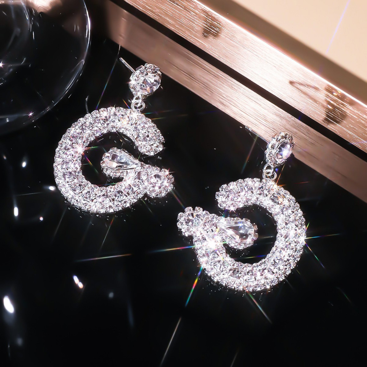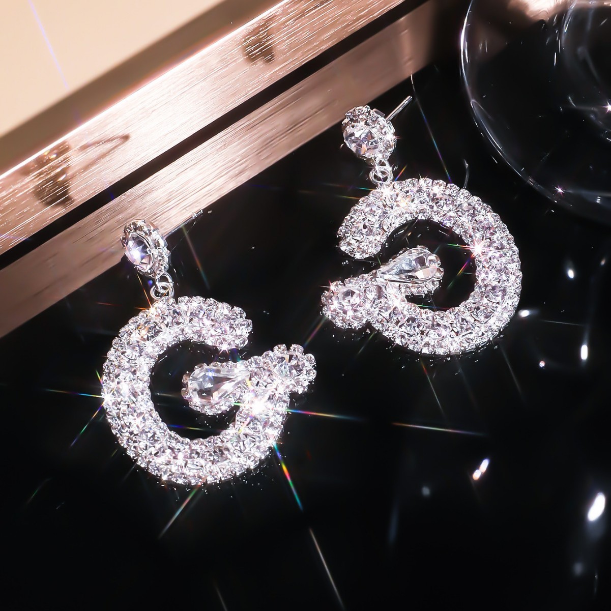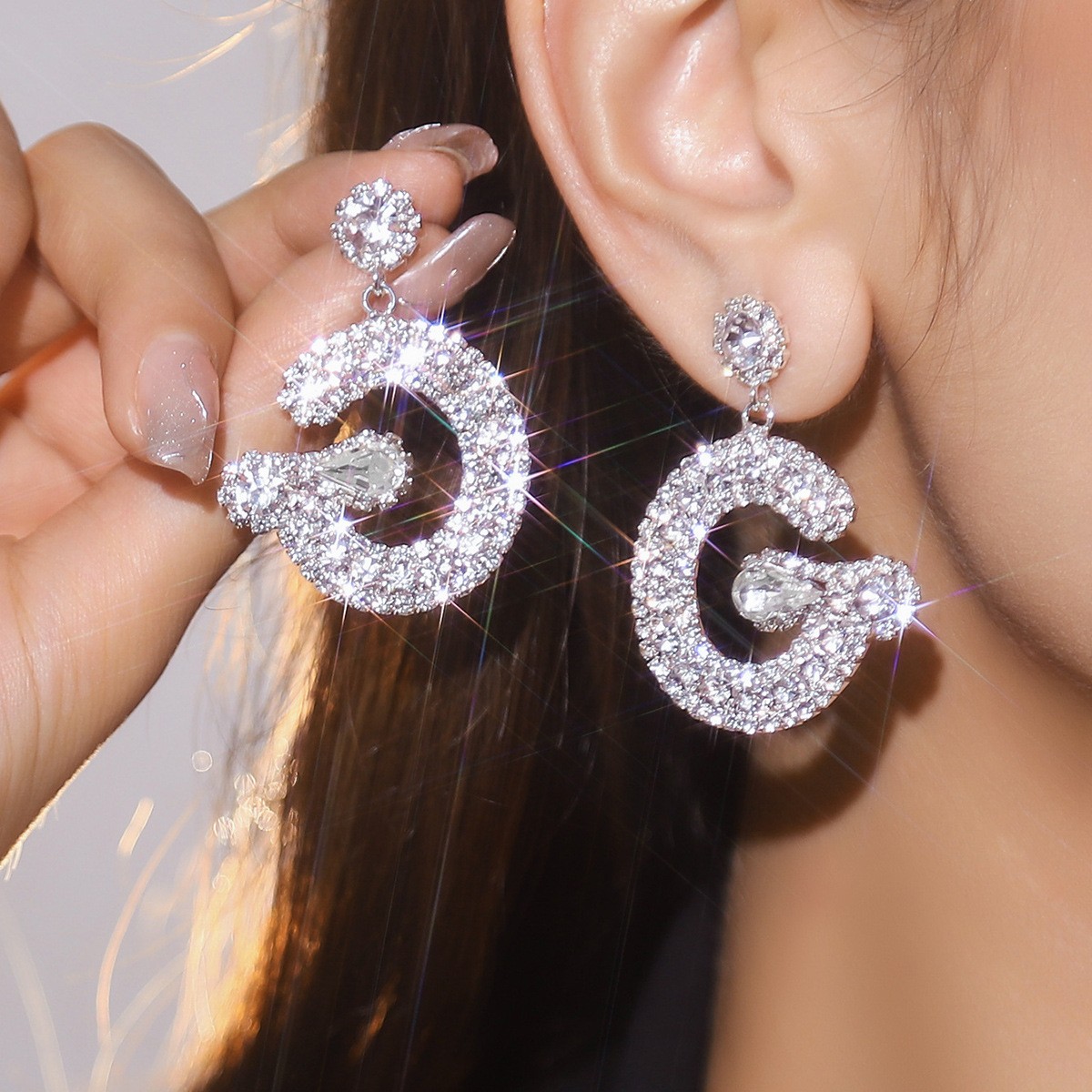 Boucles d'oreilles pendantes en laiton, Placage, bijoux de mode & pour femme & avec strass, argent, Vendu par PC