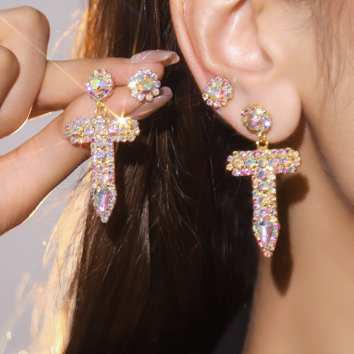 Boucles d'oreilles pendantes en laiton, 2 pièces & pour femme & avec strass, plus de couleurs à choisir, Vendu par paire
