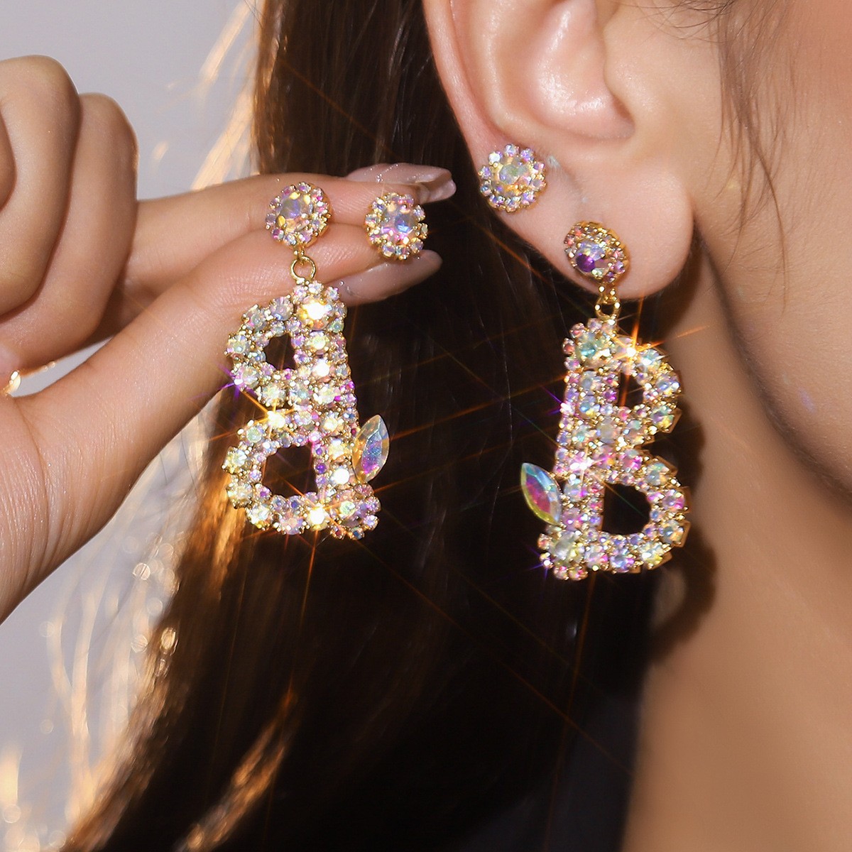 Boucles d'oreilles pendantes en laiton, 2 pièces & pour femme & avec strass, Vendu par paire