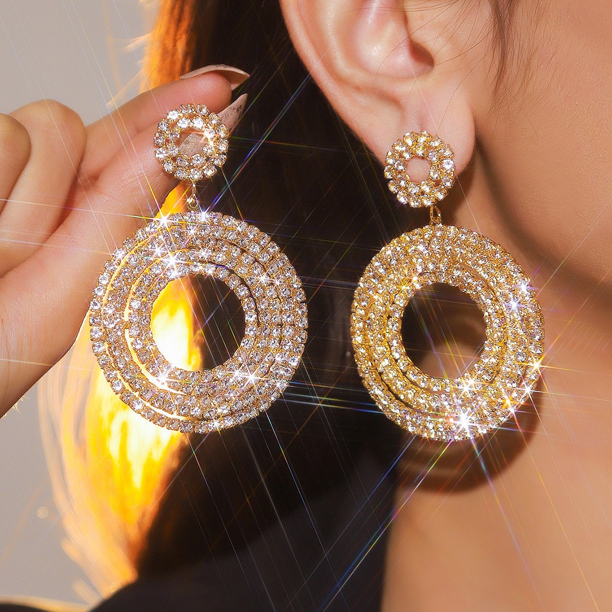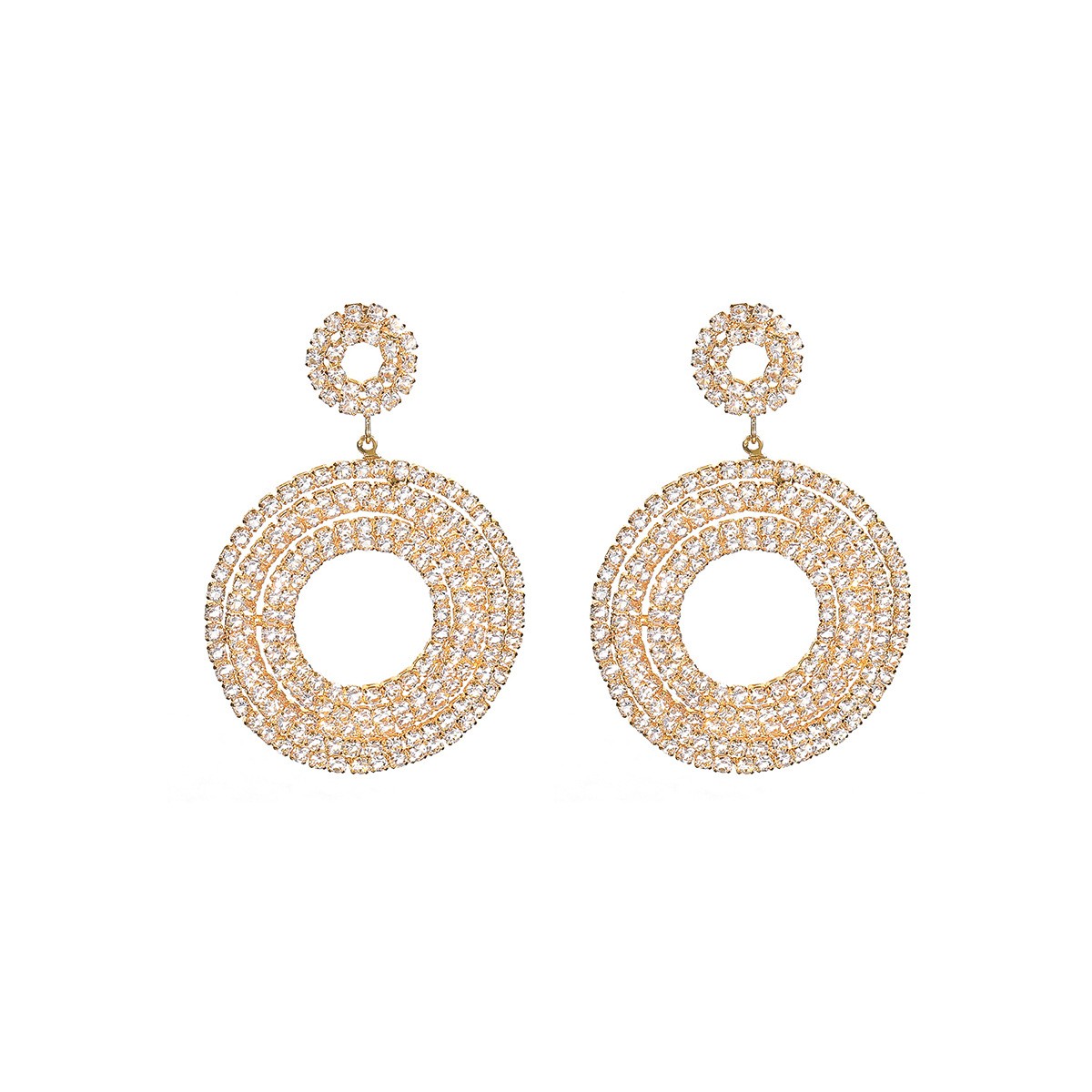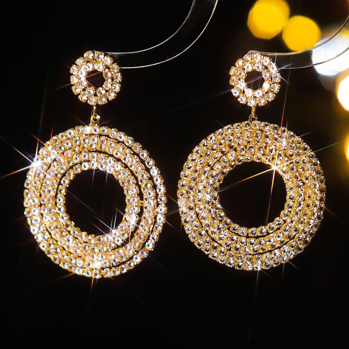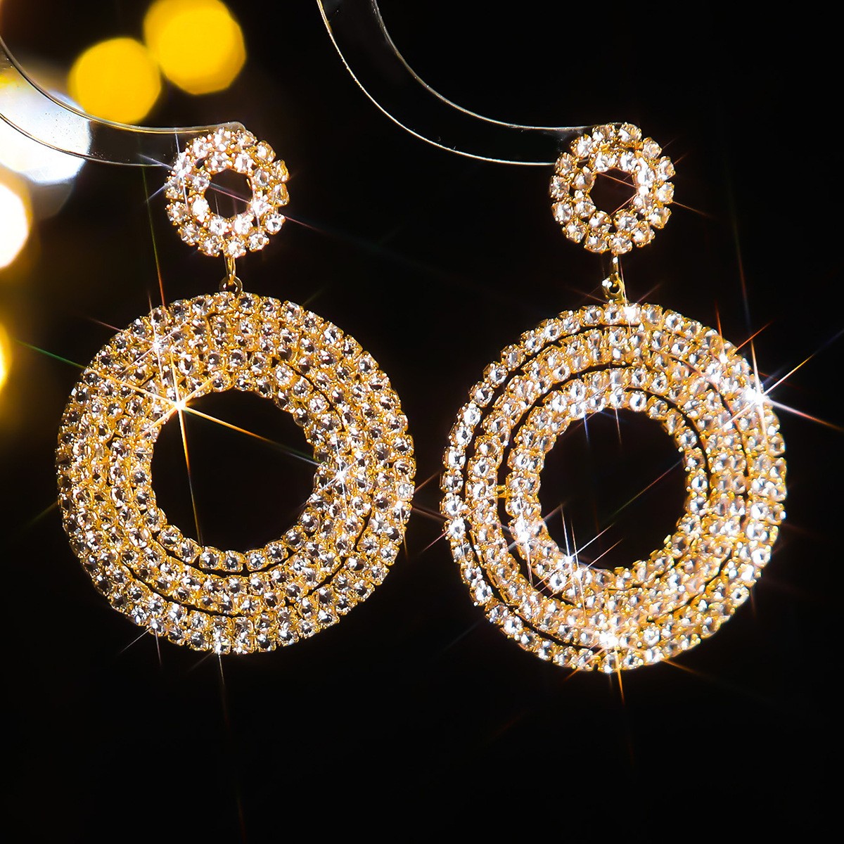 Boucles d'oreilles pendantes en laiton, bijoux de mode & pour femme & avec strass, doré, Vendu par paire
