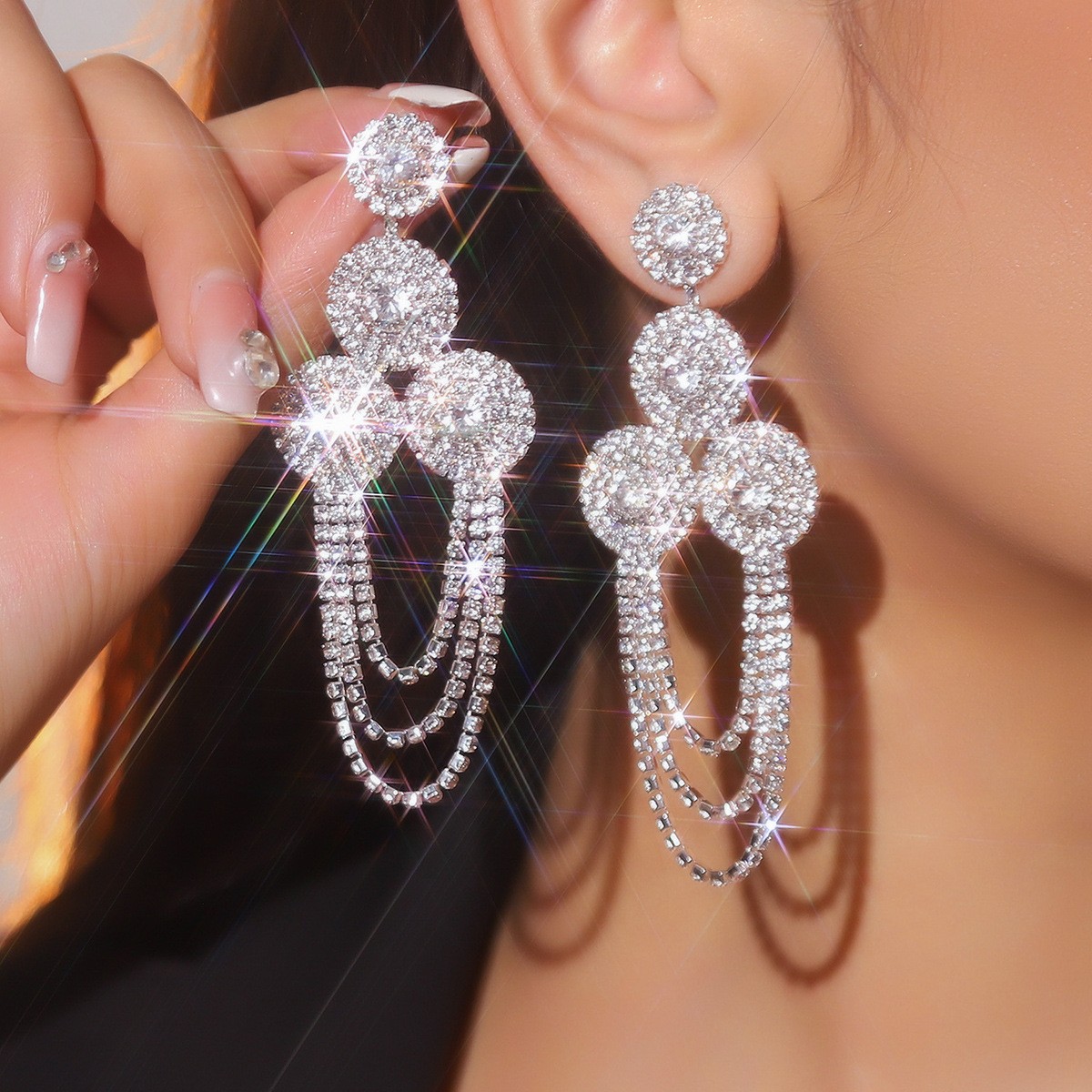 Boucles d'oreilles pendantes en laiton, bijoux de mode & pour femme & avec strass, argent, Vendu par paire