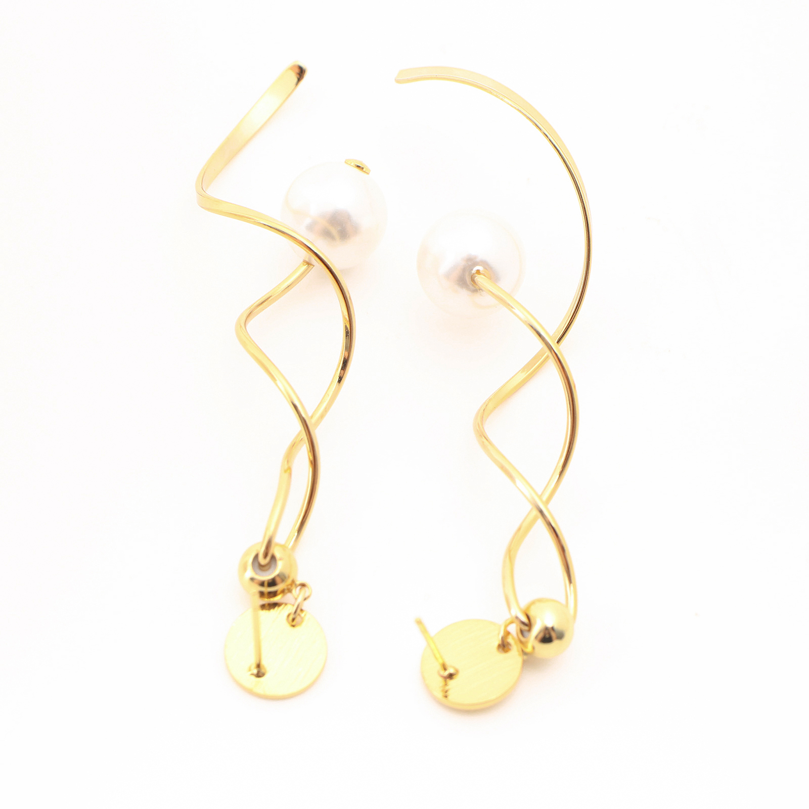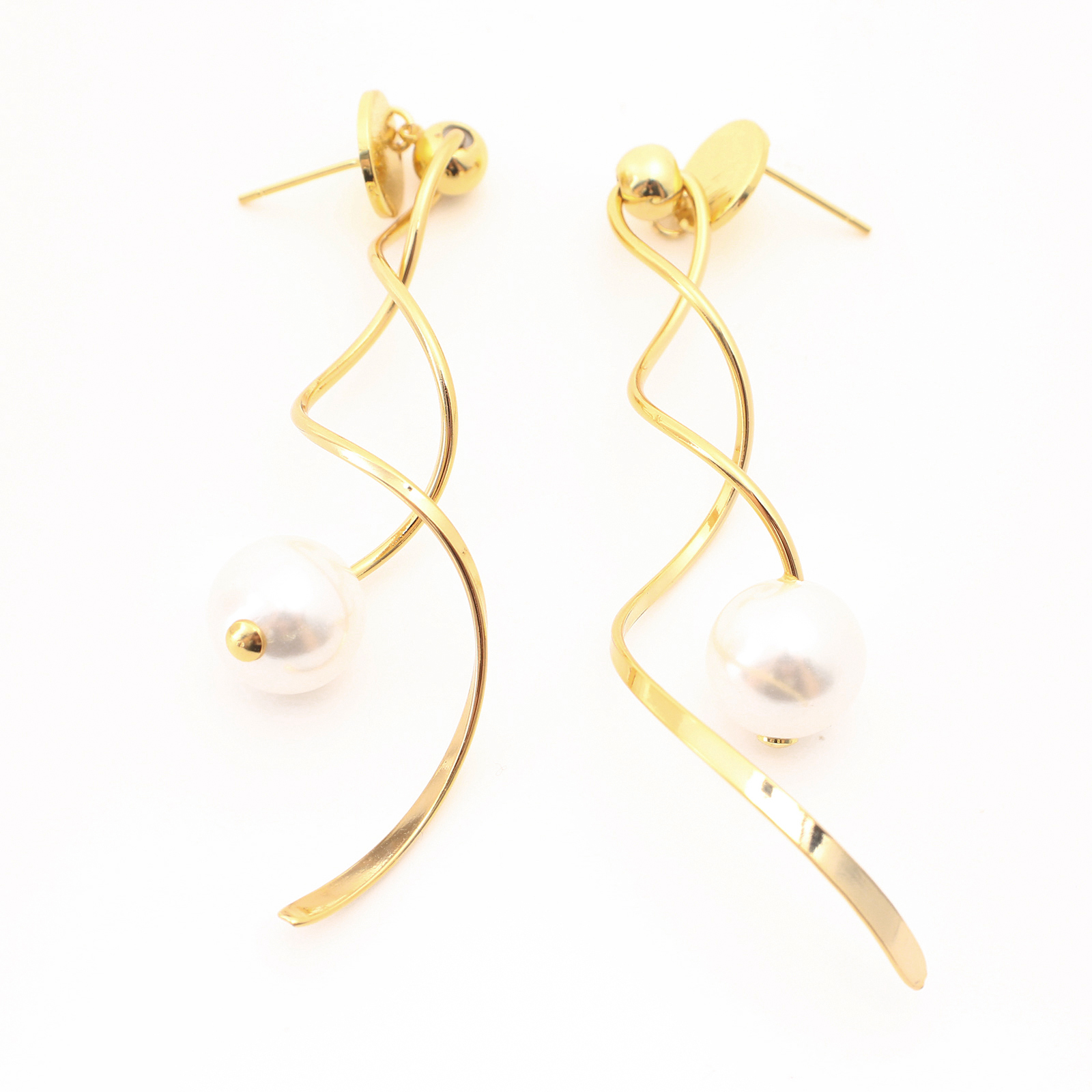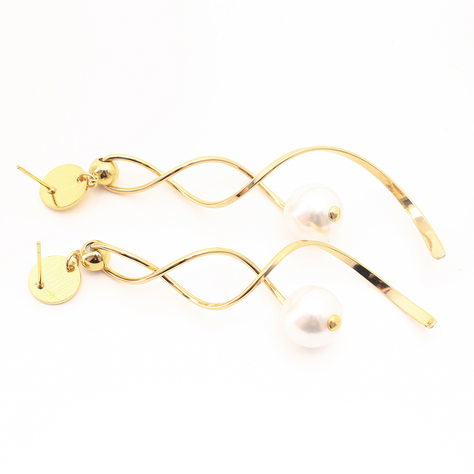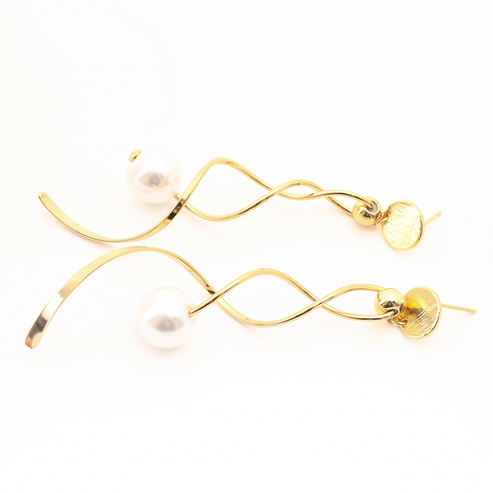 Boucles d'oreilles pendantes en laiton, avec perle d'eau douce cultivée, bijoux de mode & pour femme, doré, 81x15x13mm, Vendu par paire