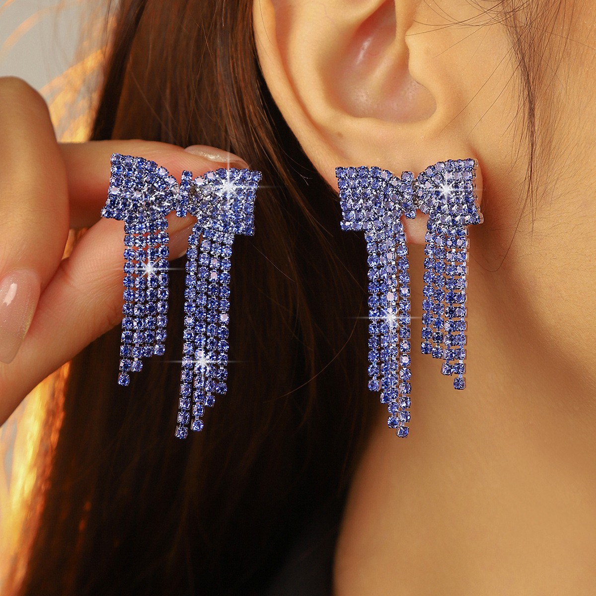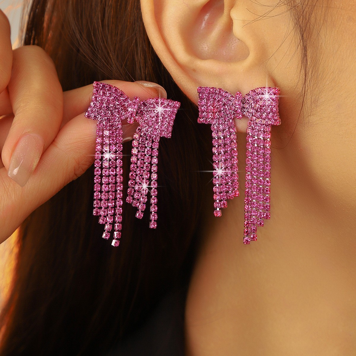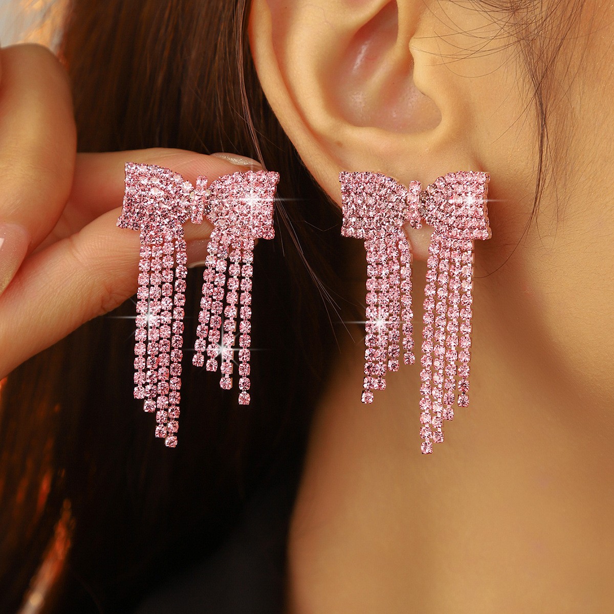 Boucles d'oreilles pendantes en laiton, Noeud papillon, bijoux de mode & pour femme & avec strass, plus de couleurs à choisir, Vendu par paire