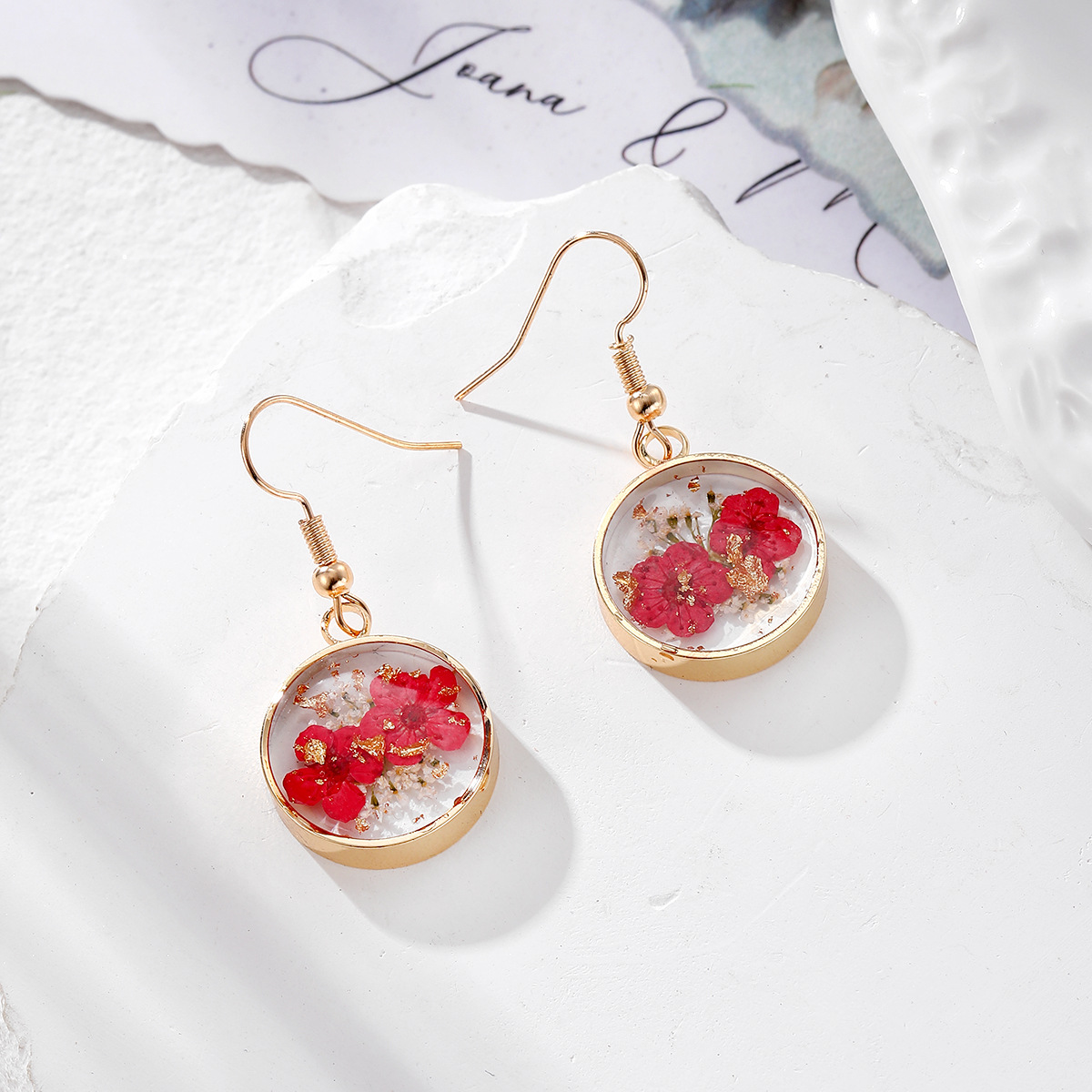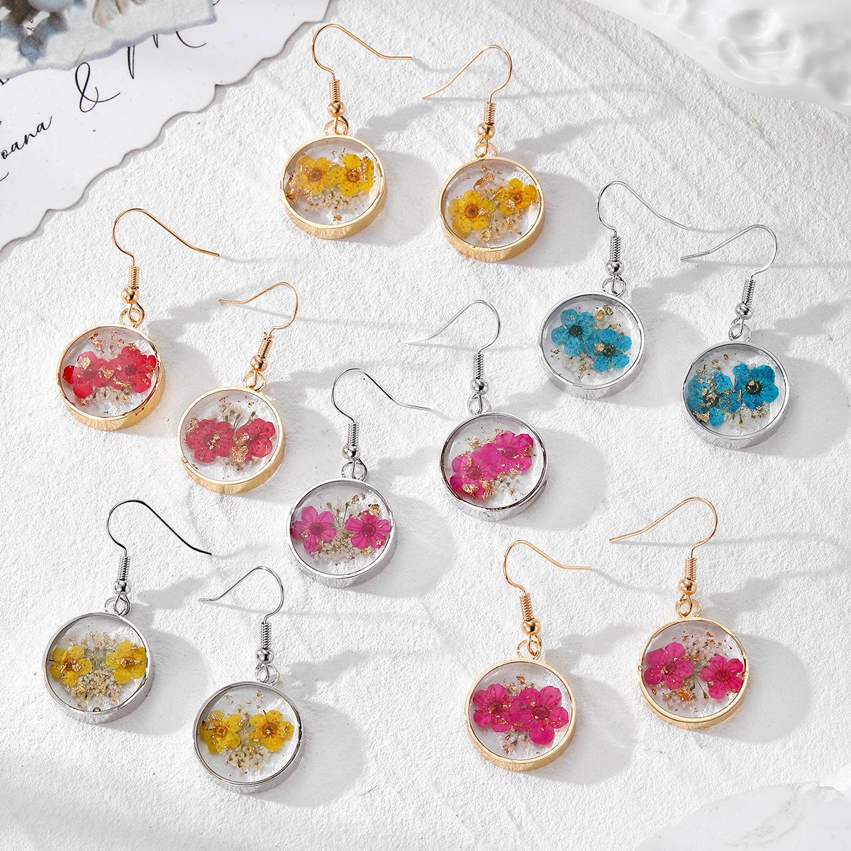 Boucles d'oreilles pendantes en laiton, plastique, avec Fleurs séchées & laiton, goutté d'époxy, bijoux de mode, plus de couleurs à choisir, Vendu par paire