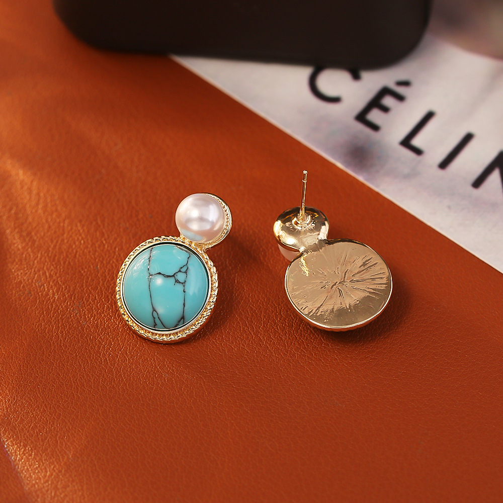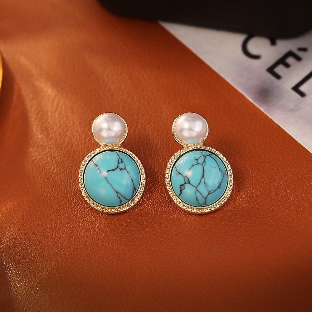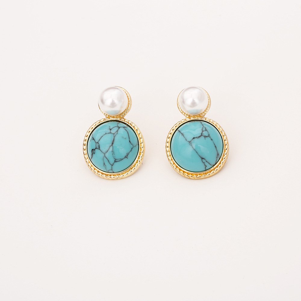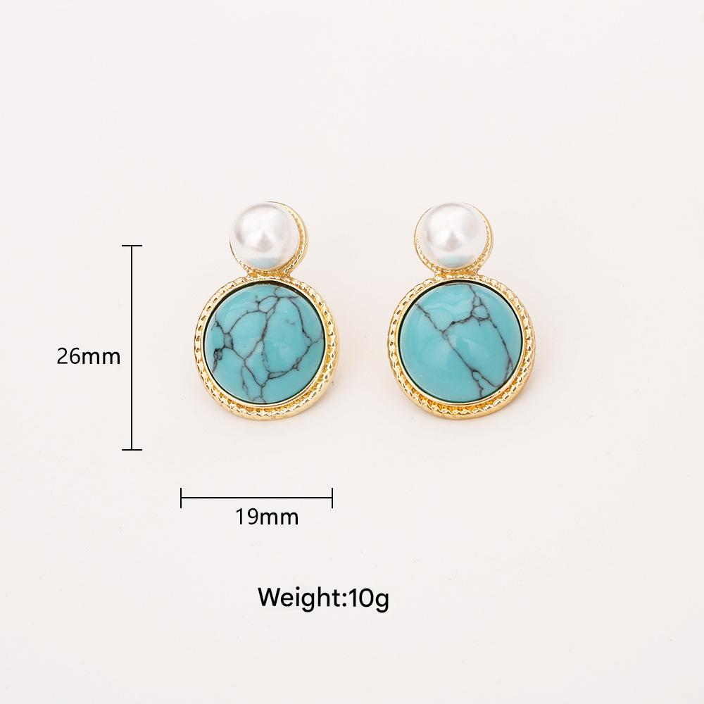 Boucles d'oreilles pendantes en laiton, avec turquoise synthétique & perle de plastique, Plaqué d'or, bijoux de mode & pour femme, Vendu par paire