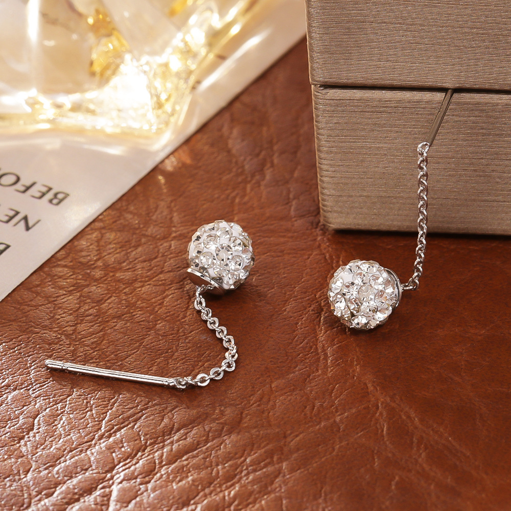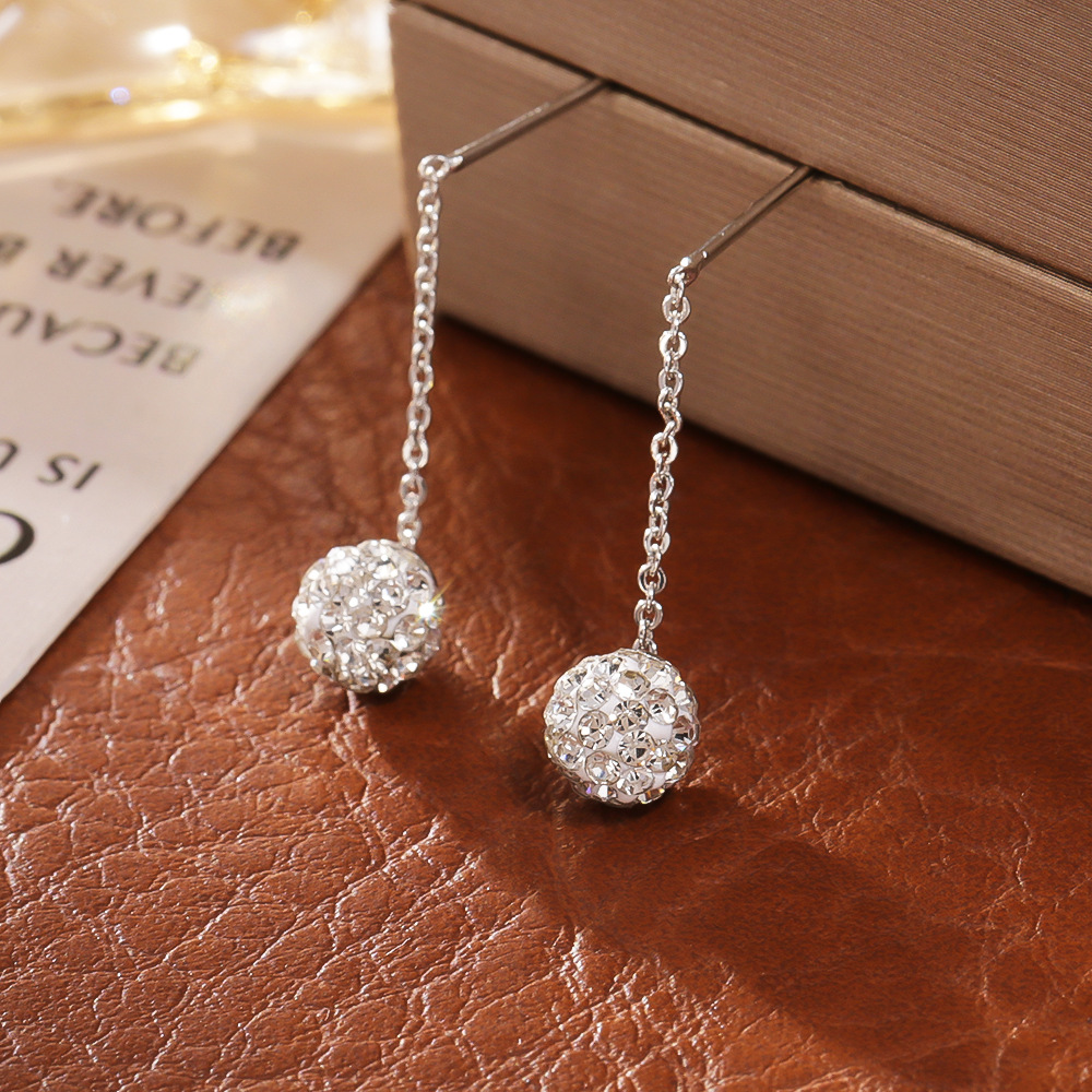 Boucles d'oreilles pendantes en laiton, Placage, bijoux de mode & pour femme & avec strass, argent, Vendu par paire