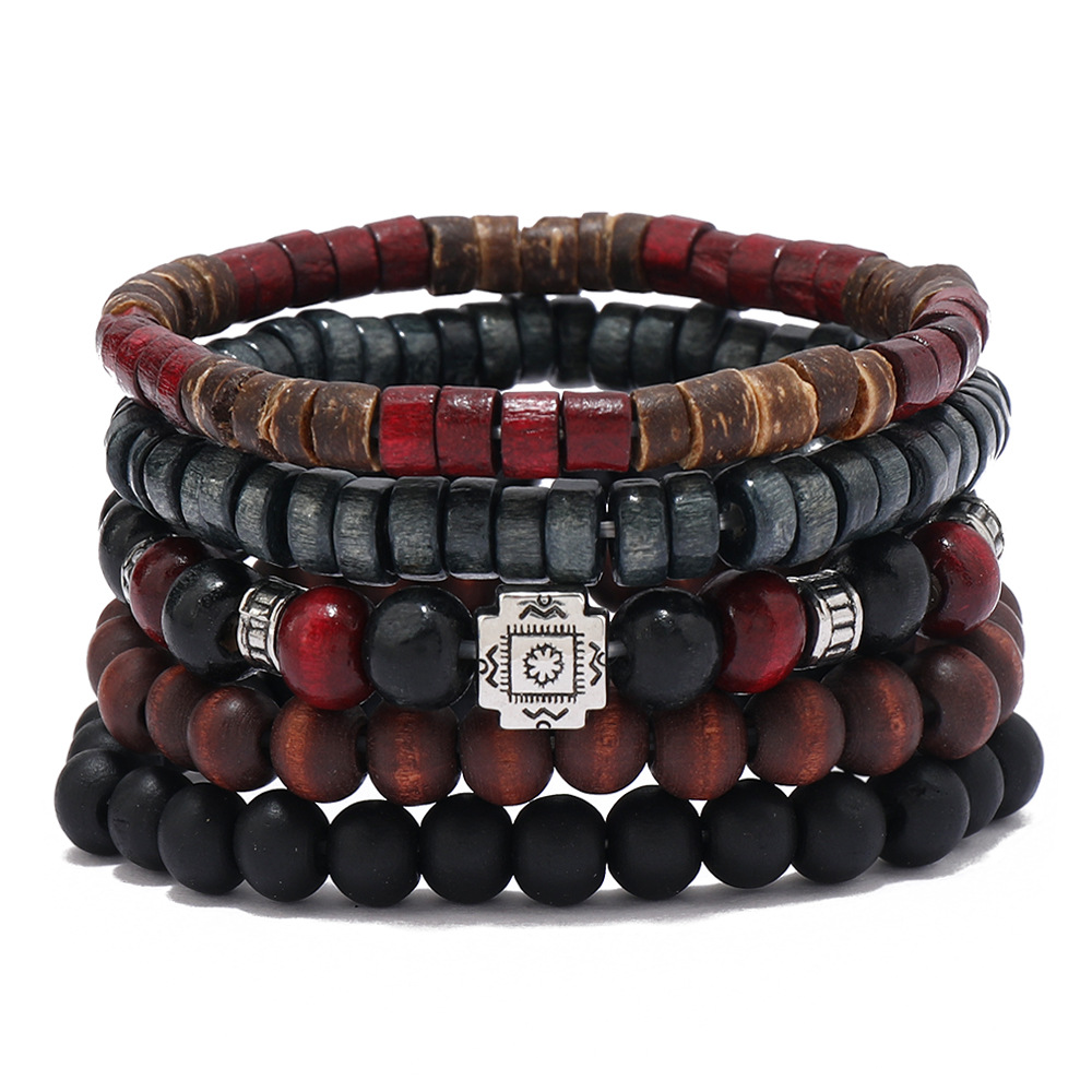 Bracelet châle , bois, avec noix de coco & alliage de zinc, fait à la main, 5 pièces & bijoux de mode & pour homme, multicolore, Vendu par fixé