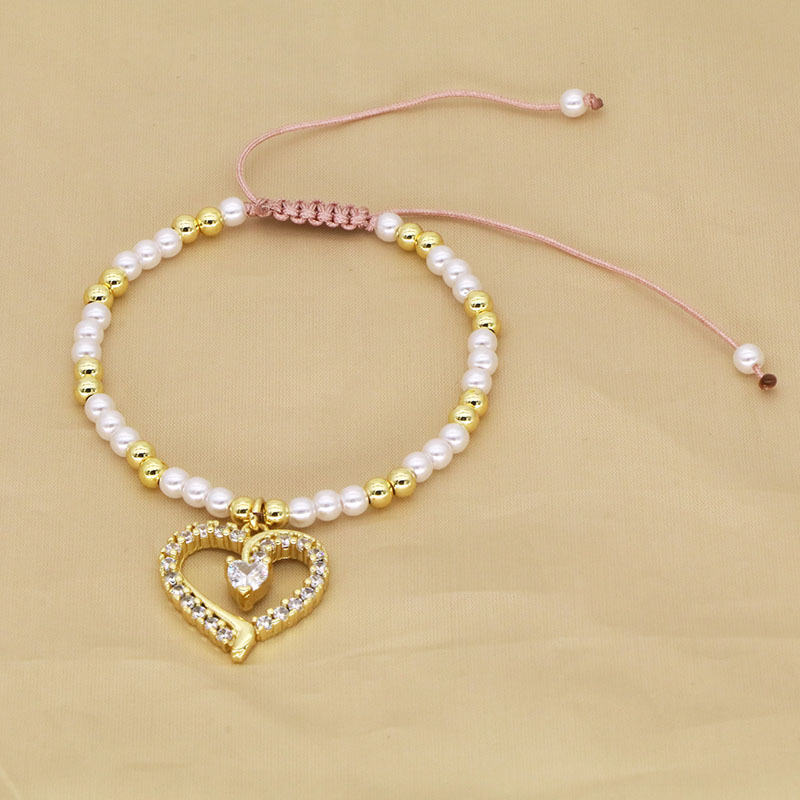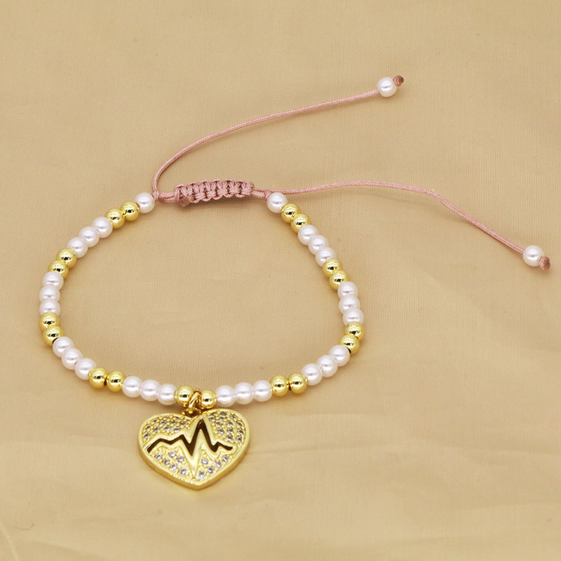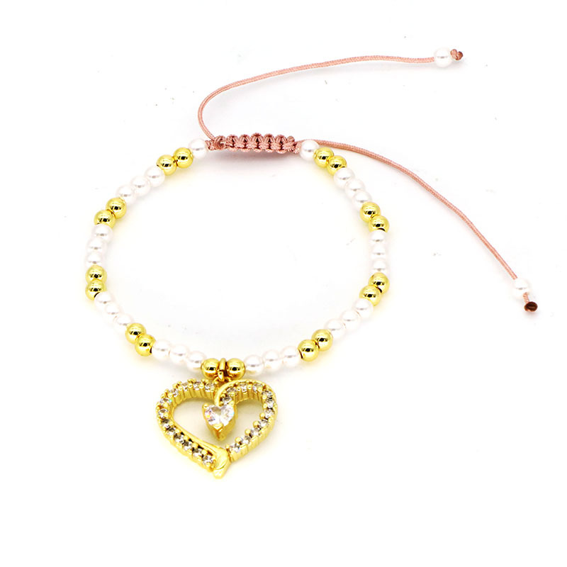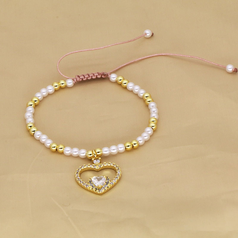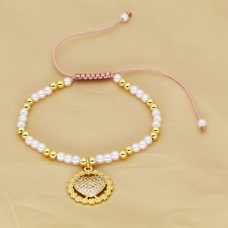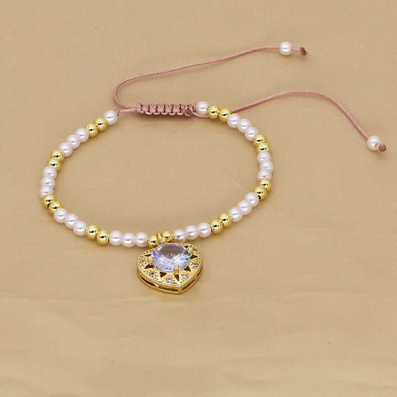 Bracelet cubique en laiton zircon pavent, avec Cordon de noeud & perle de plastique, Placage de couleur d'or, Réglable & bijoux de mode & pavé de micro zircon & pour femme, plus de couleurs à choisir, protéger l'environnement, sans nickel, plomb et cadmium, Longueur Environ 28 cm, Vendu par PC