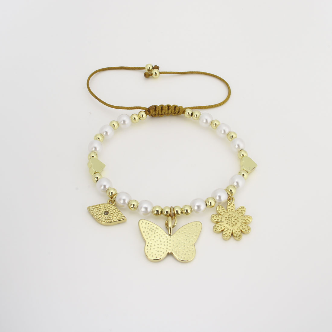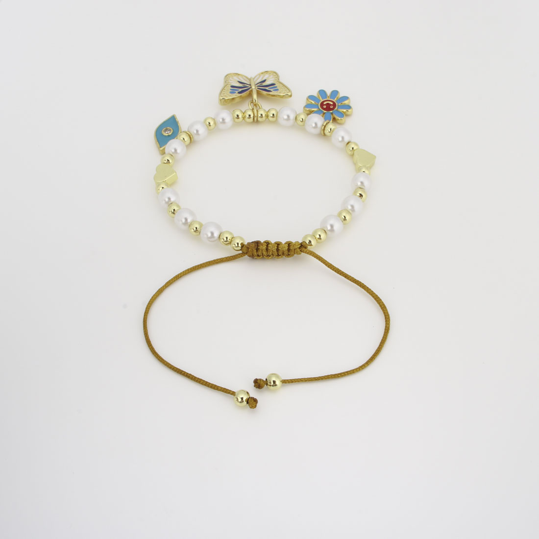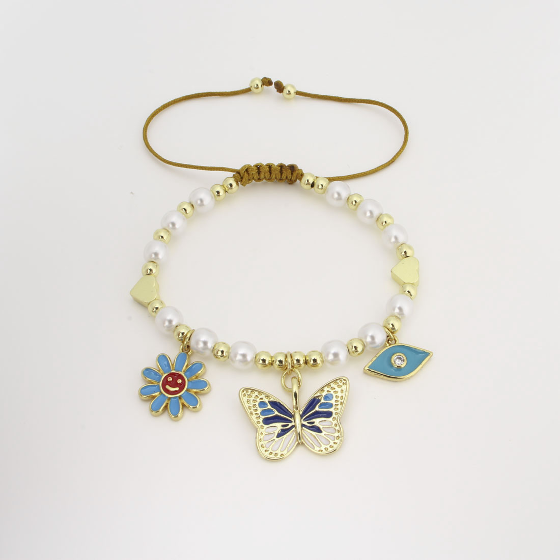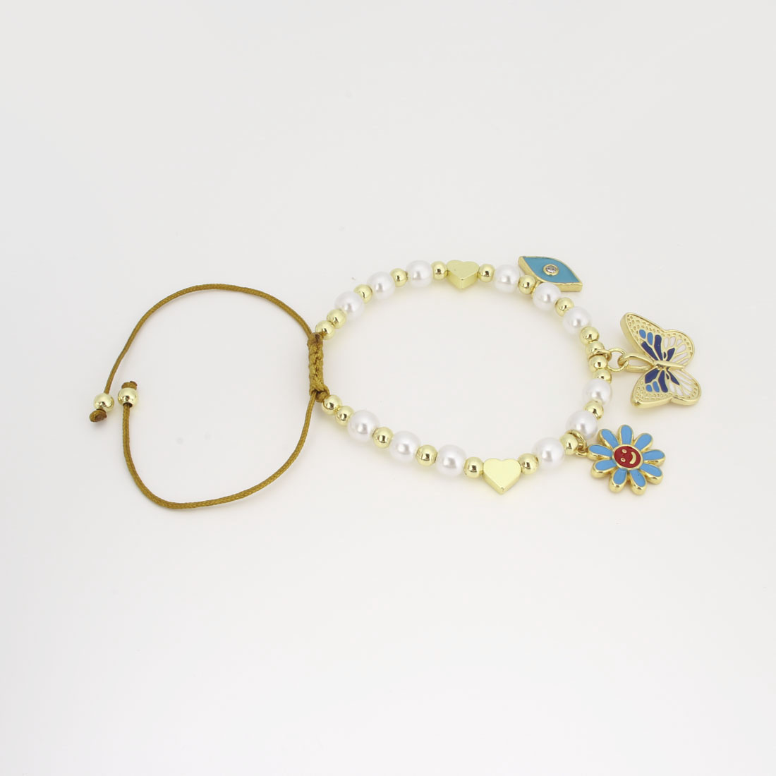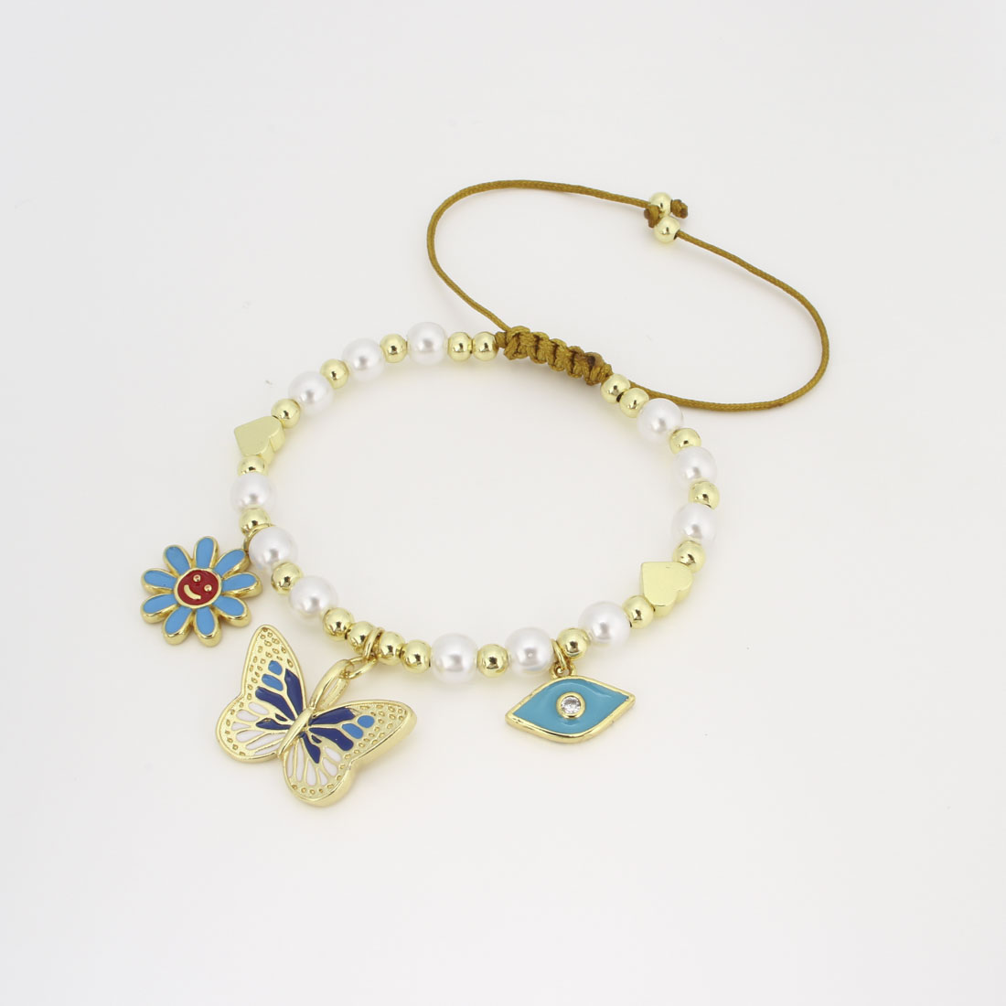 Bracelet cubique en laiton zircon pavent, avec perle de plastique, pavé de micro zircon & pour femme & émail, Longueur 32 cm, Vendu par PC