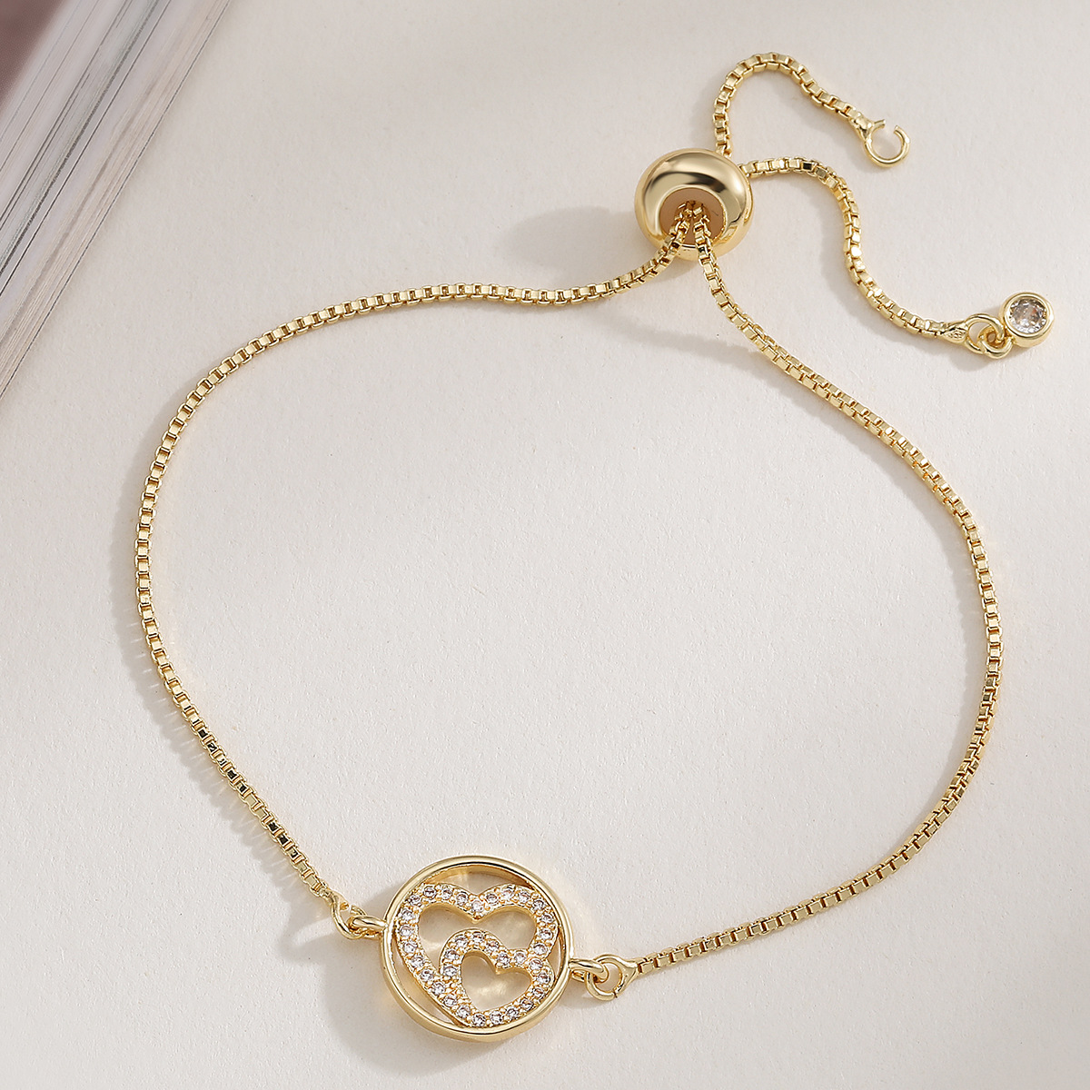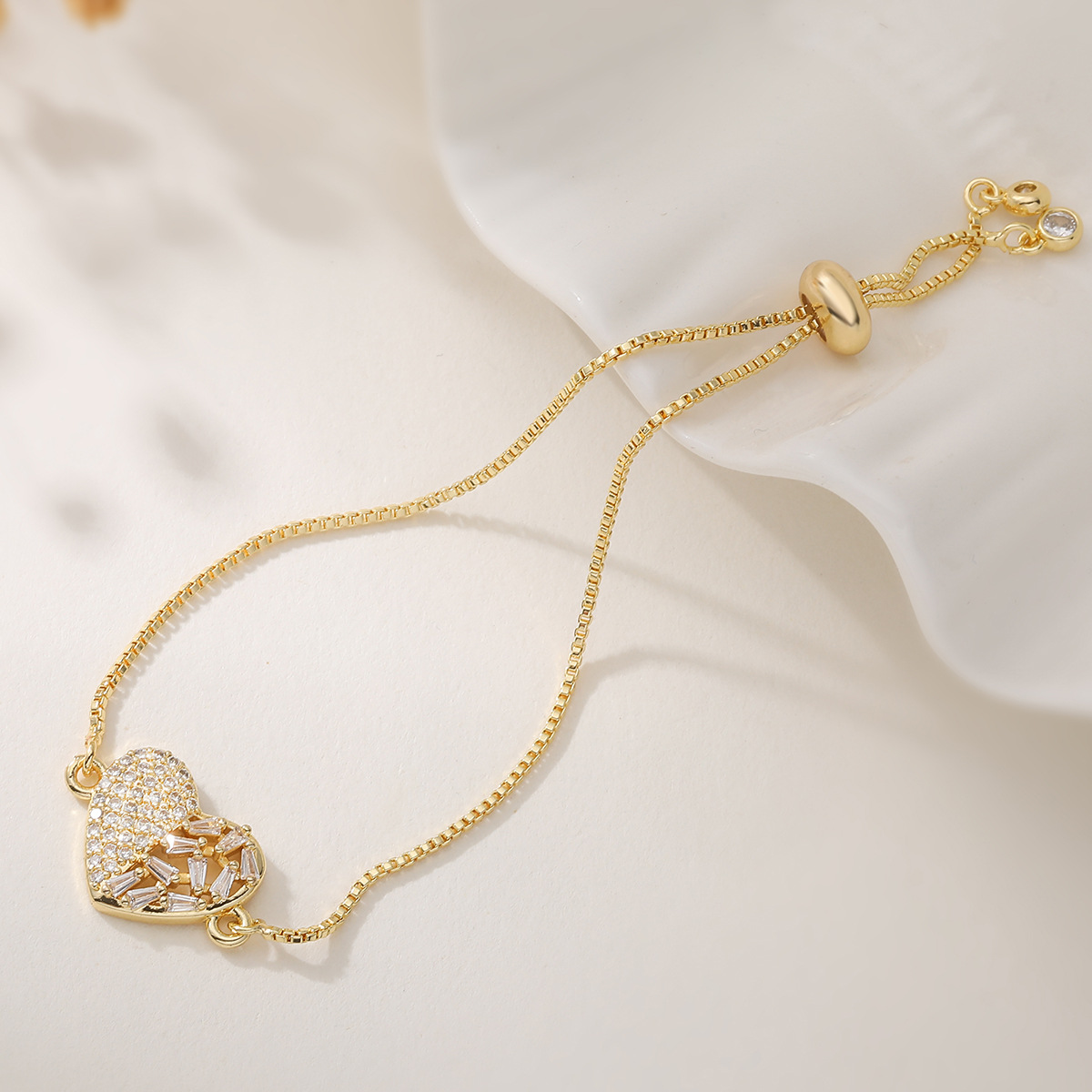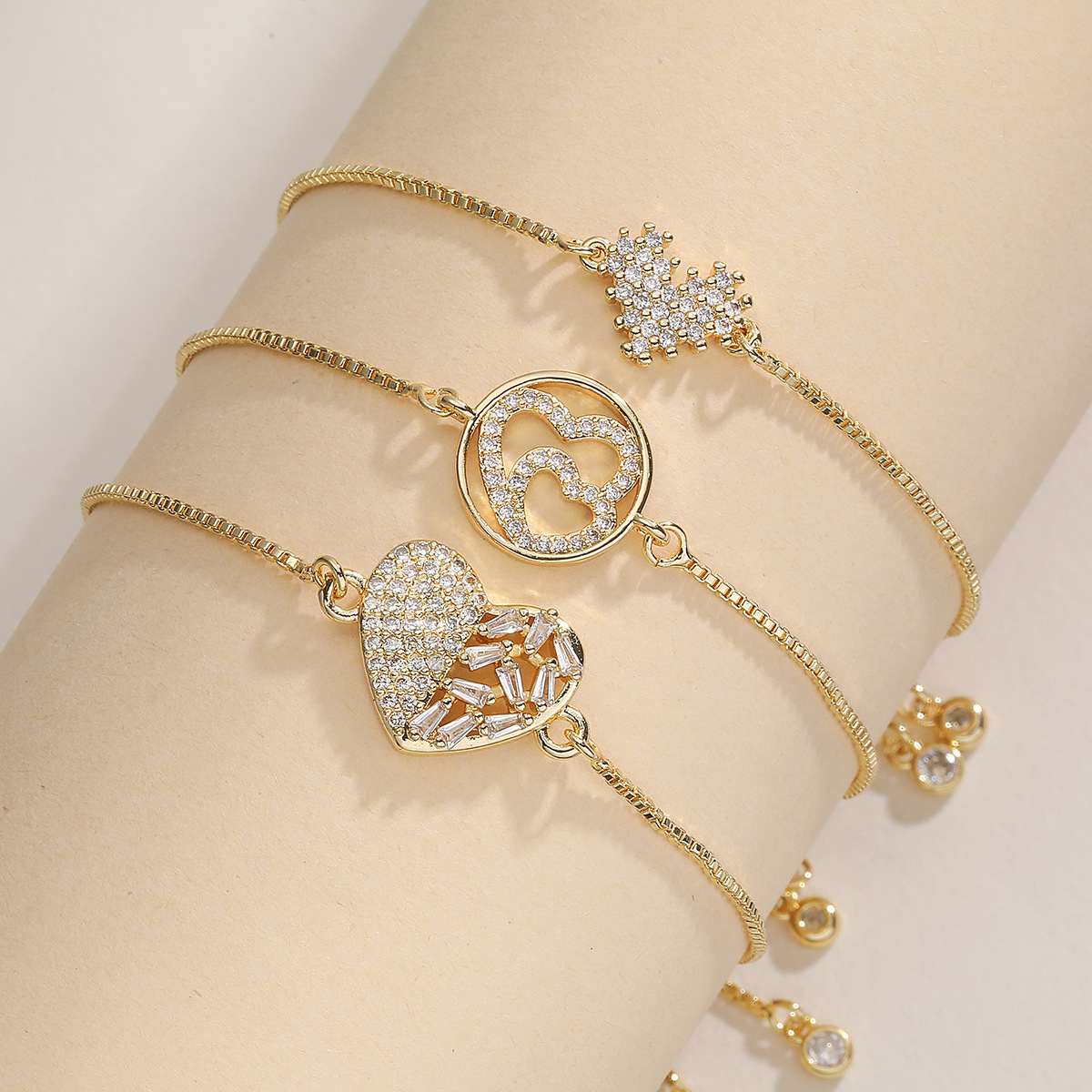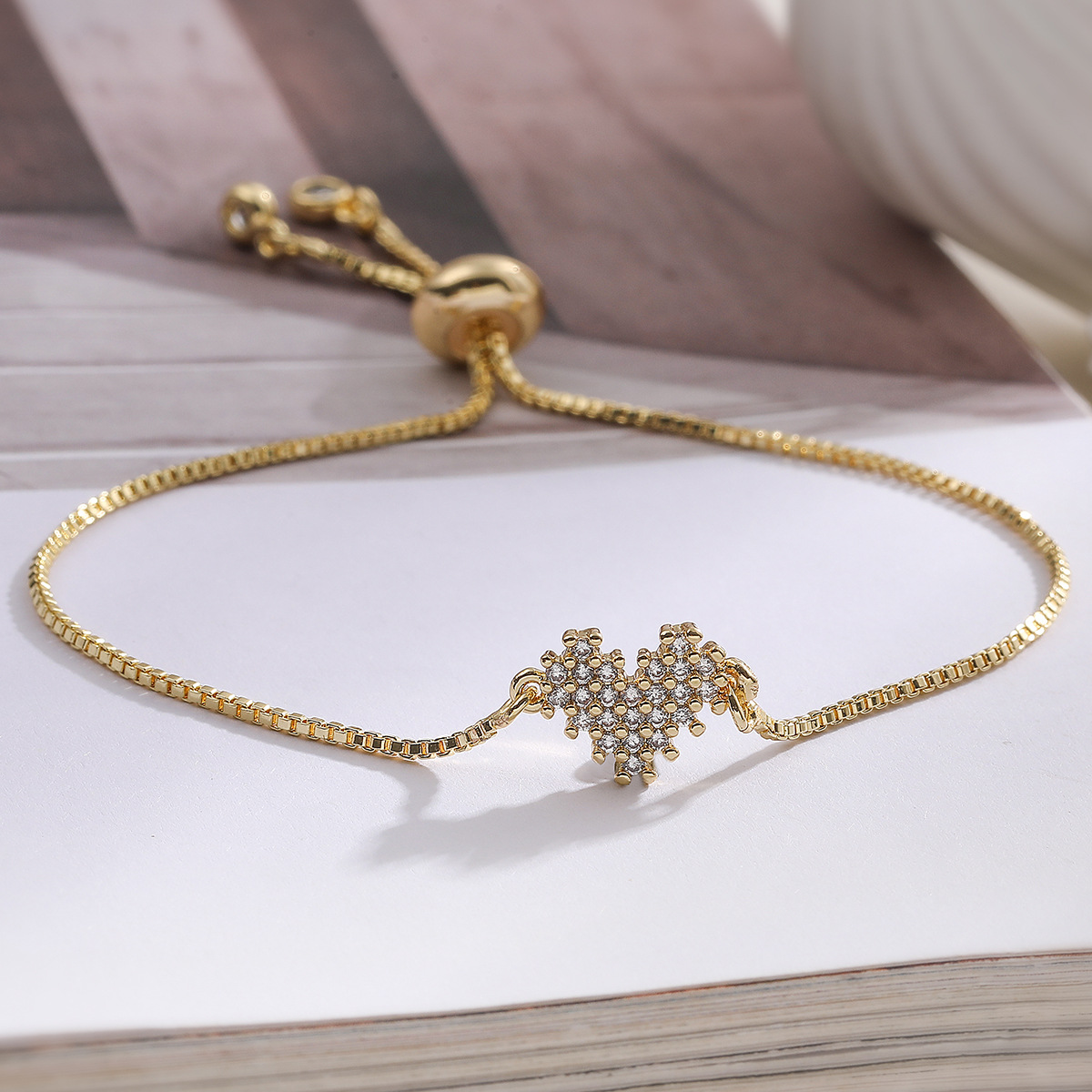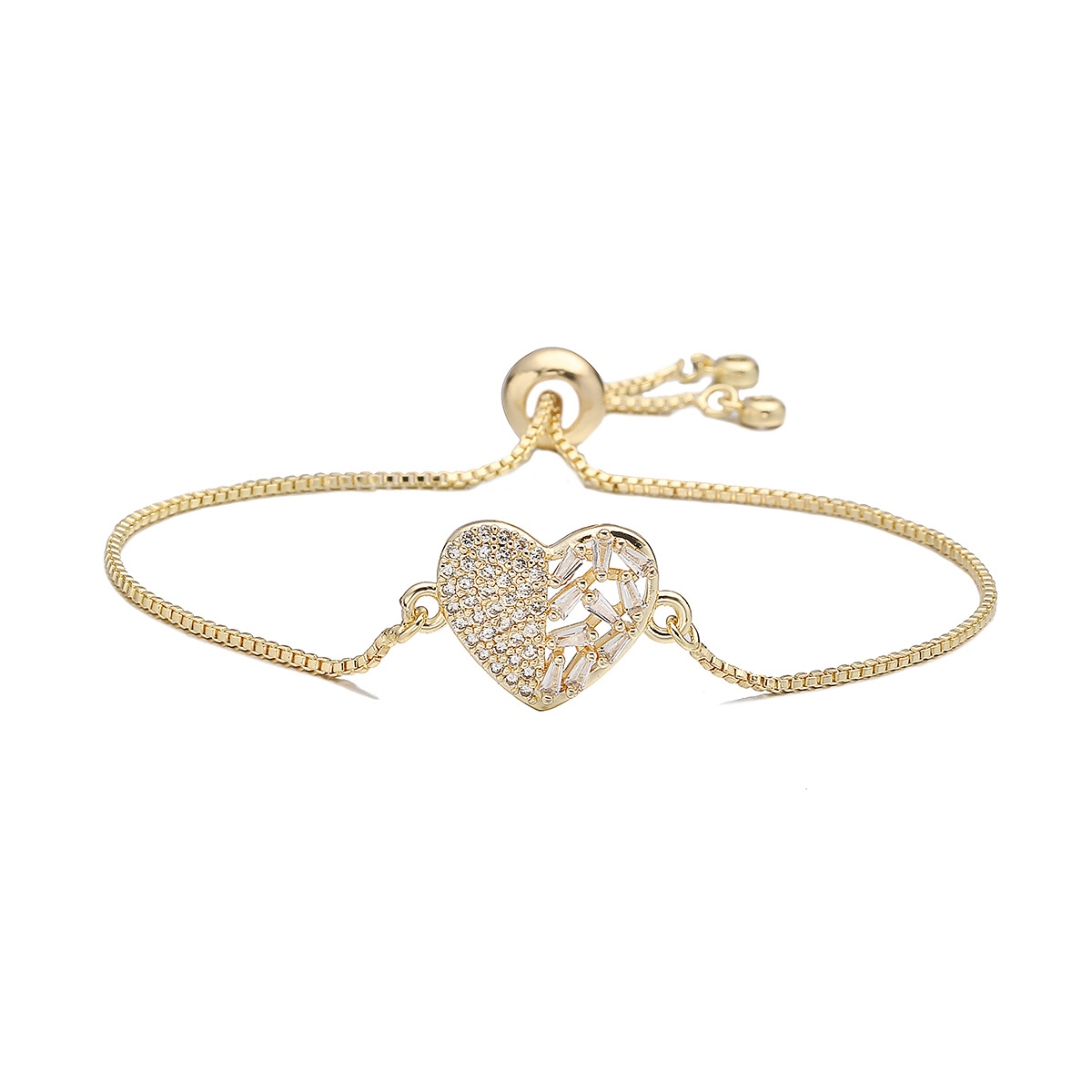 Bracelet cubique en laiton zircon pavent, coeur, Plaqué or 18K, styles différents pour le choix & pavé de micro zircon & pour femme, Vendu par PC
