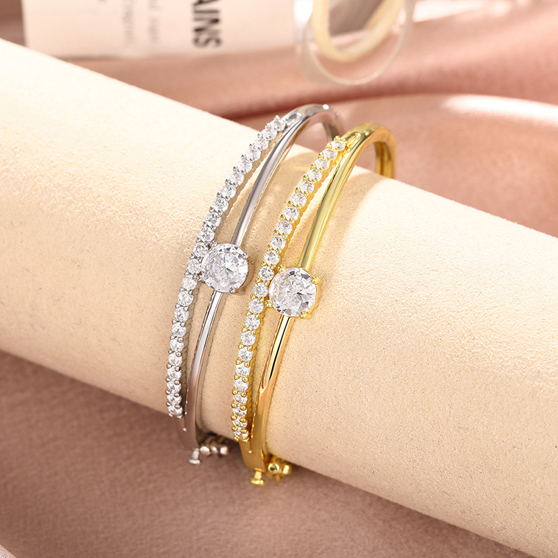 Bracelet cubique en laiton zircon pavent, Placage, pavé de micro zircon & pour femme & creux, plus de couleurs à choisir, Vendu par PC