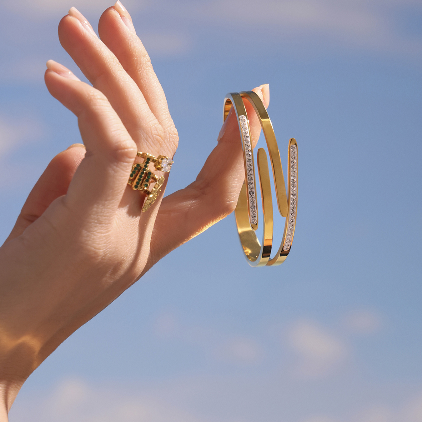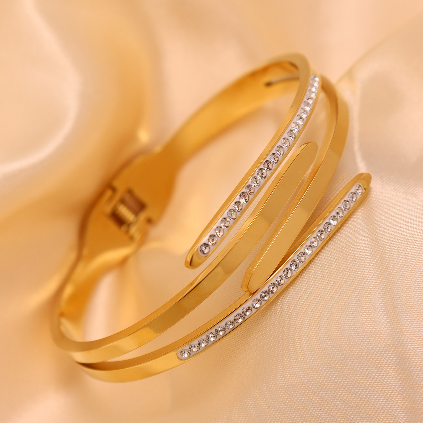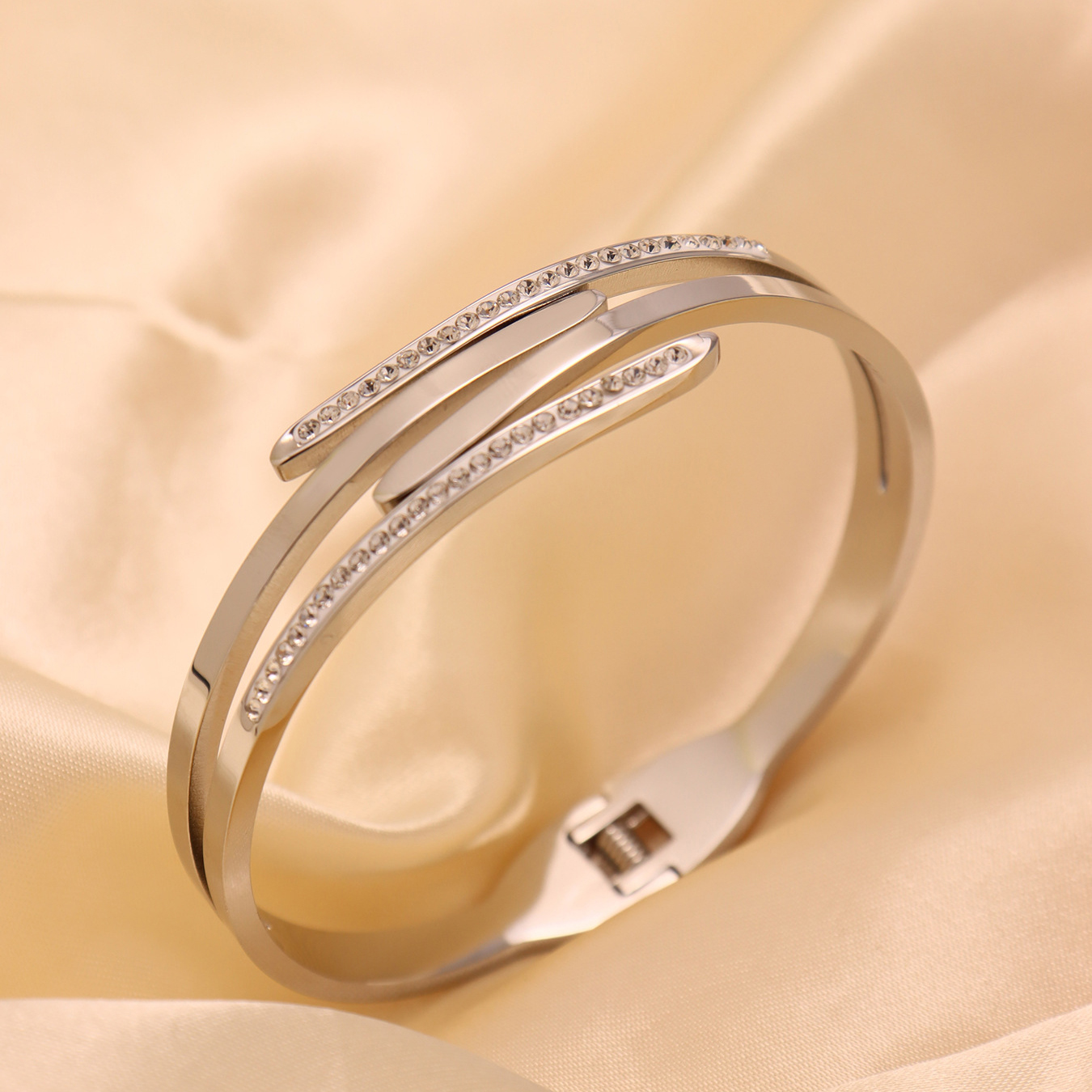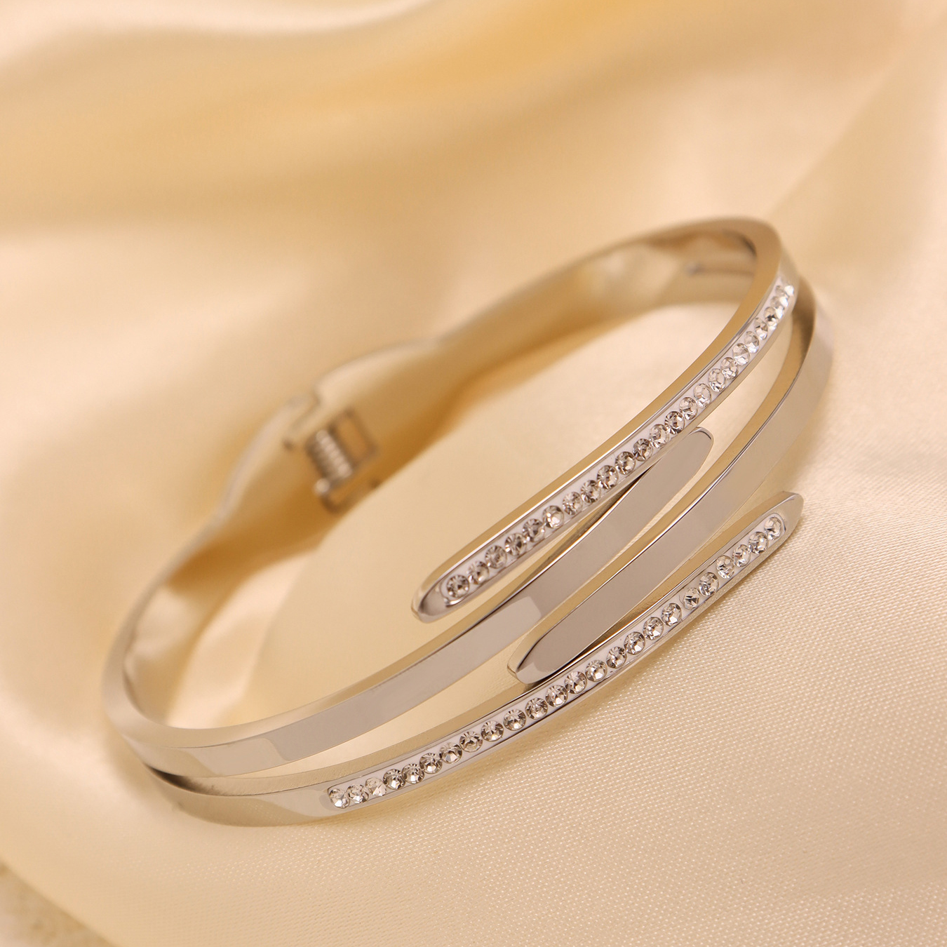 Bracelet en acier inoxydable Set, Acier inoxydable 304, Placage, pour femme & avec strass & creux, plus de couleurs à choisir, Vendu par PC