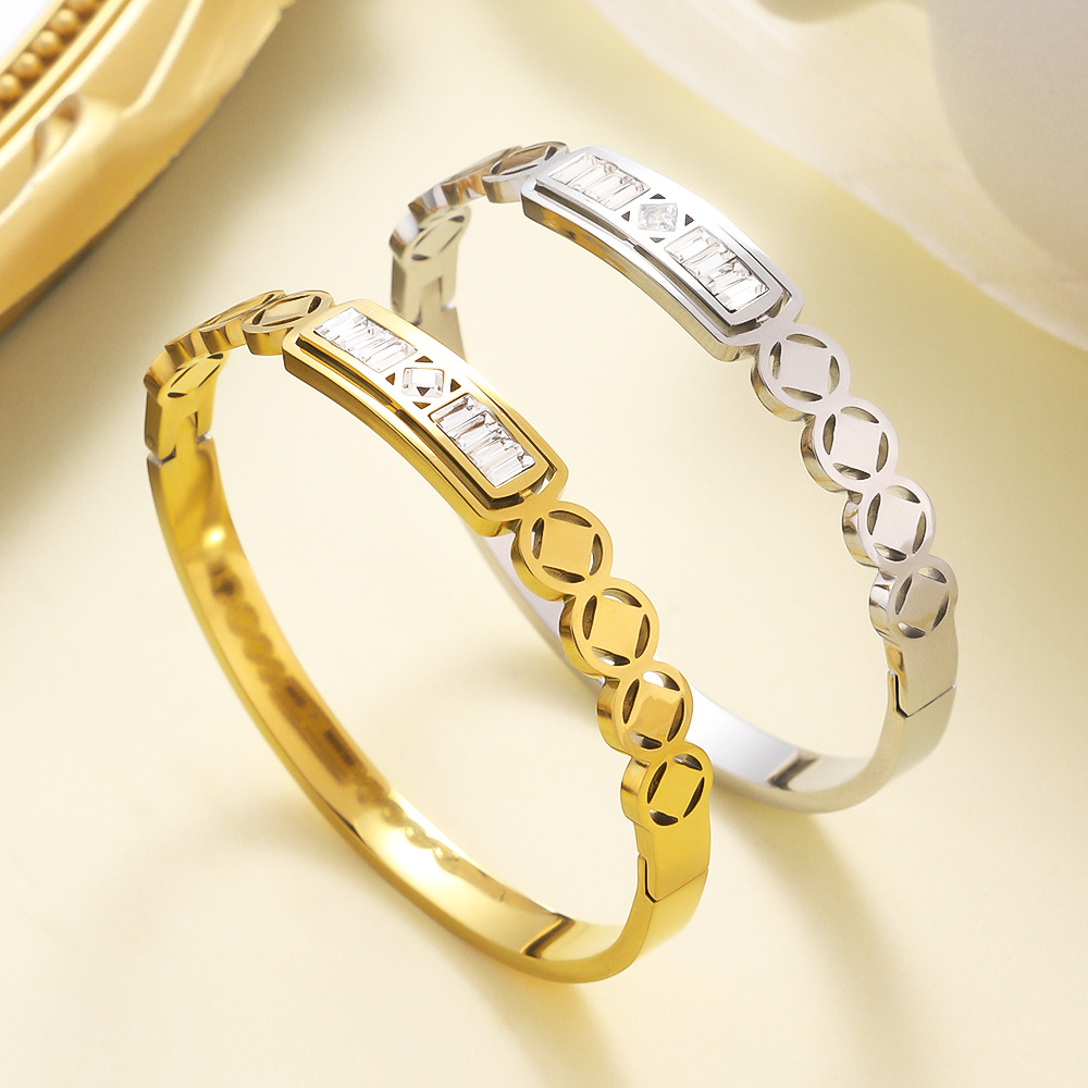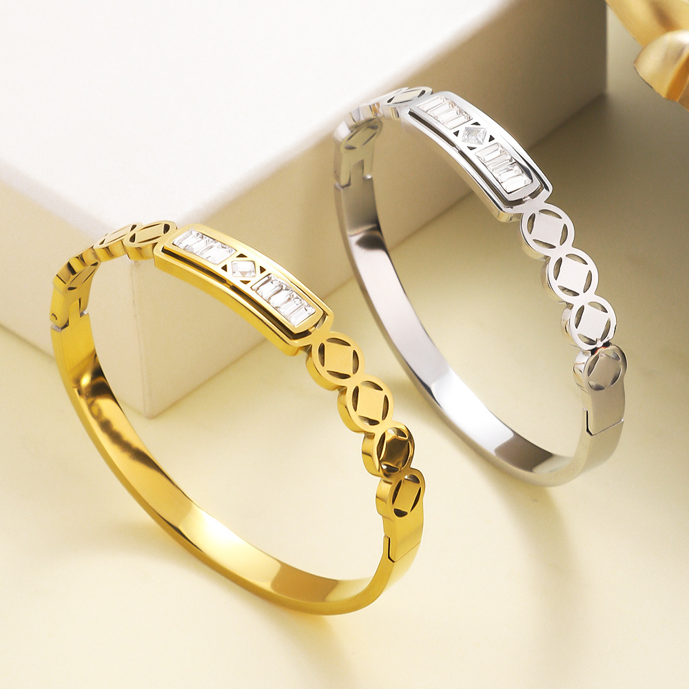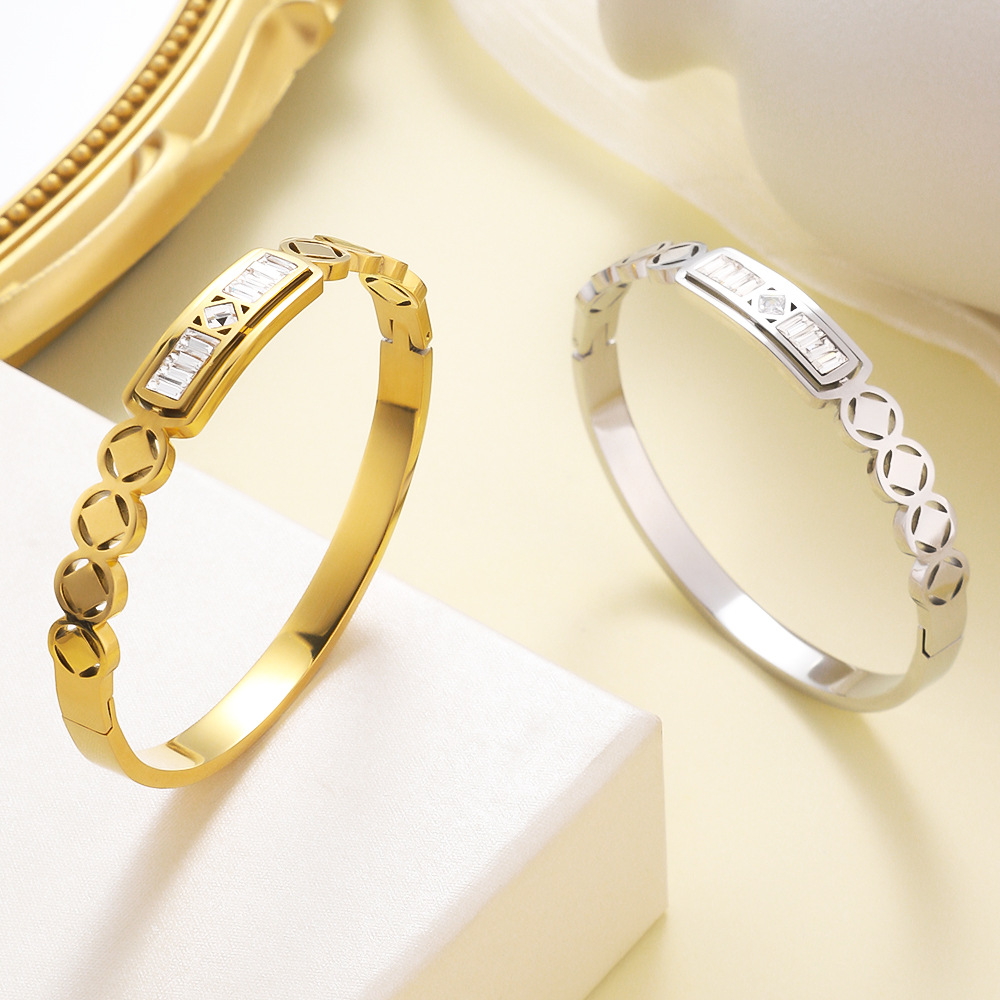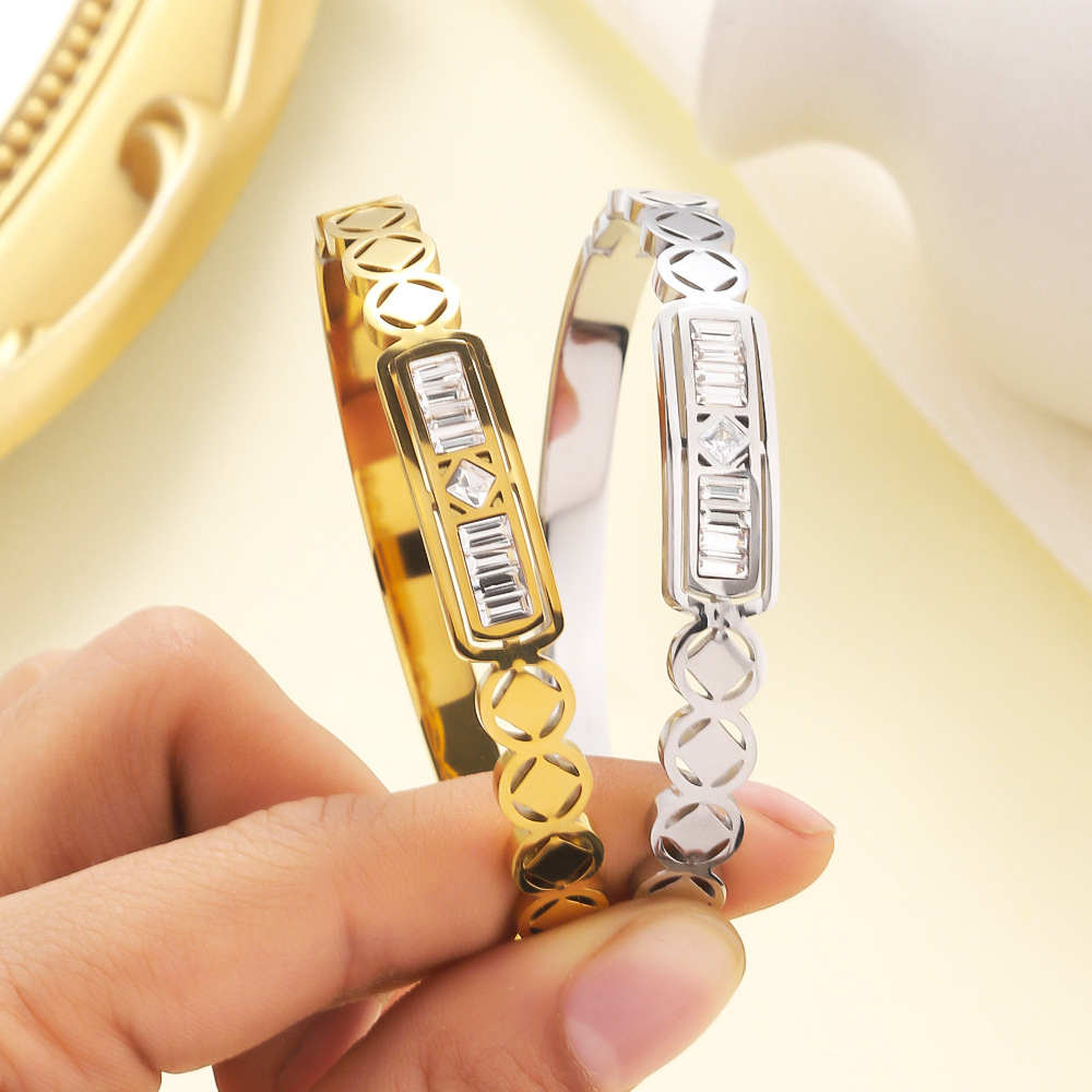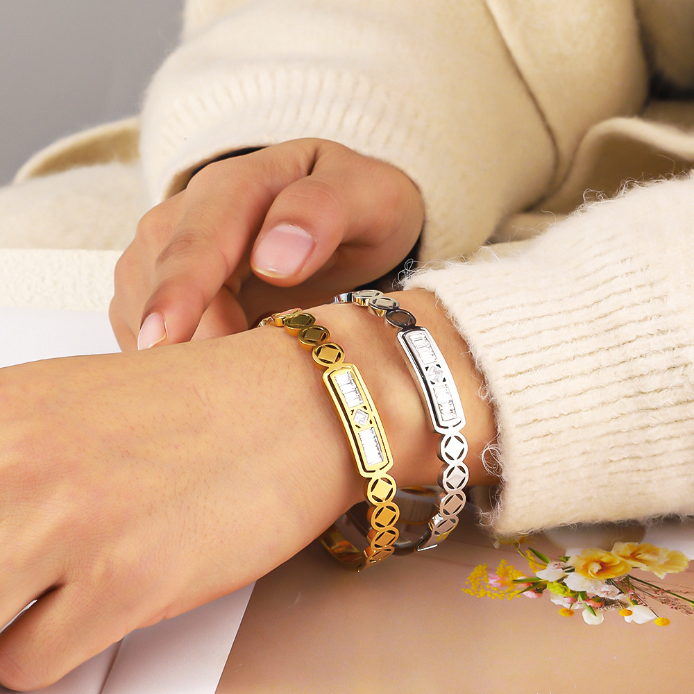 Bracelet en acier inoxydable, Acier inoxydable 304, avec cristal, Placage, bijoux de mode & pour femme & creux, plus de couleurs à choisir, Vendu par PC