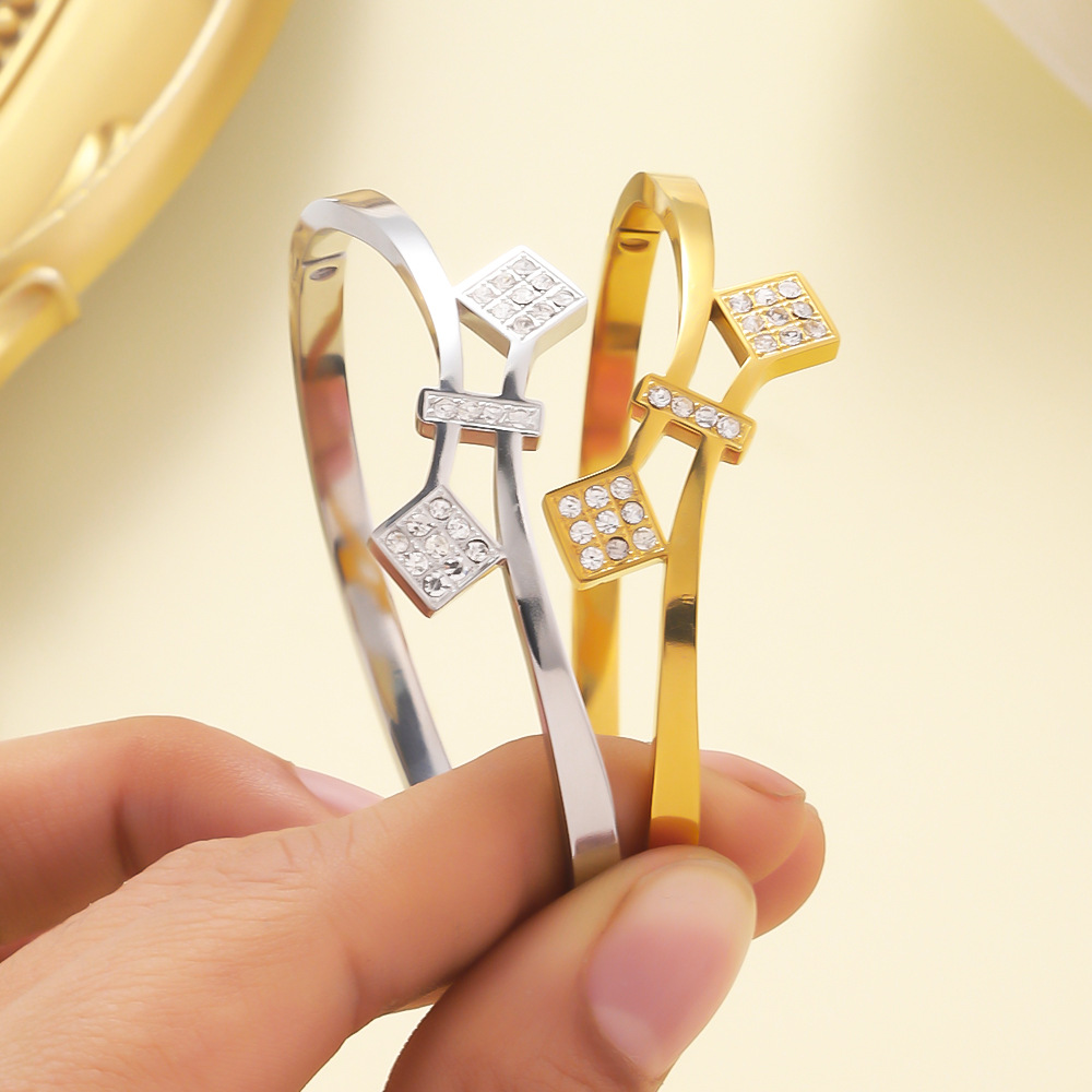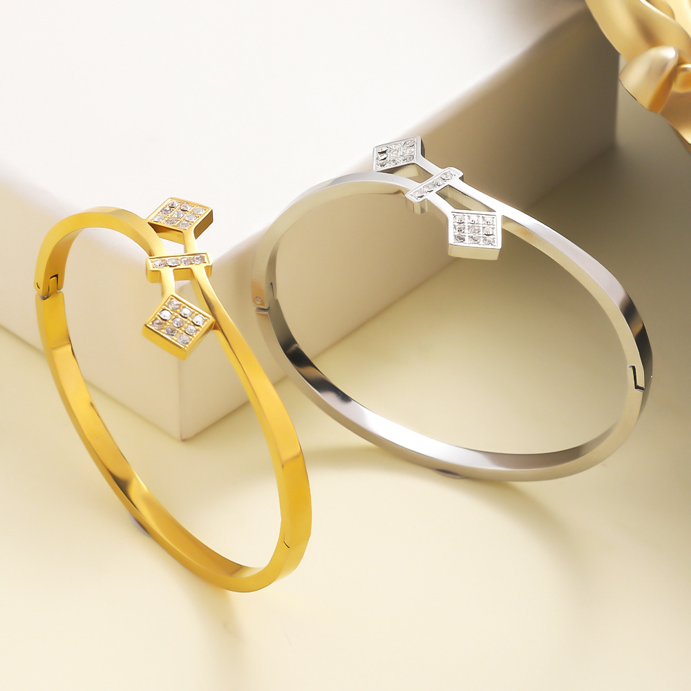 Bracelet en acier inoxydable, Acier inoxydable 304, Plaqué or 18K, styles différents pour le choix & pour femme & avec strass, Vendu par PC