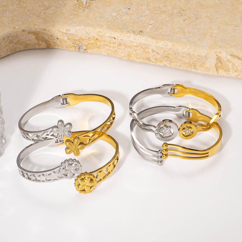 Bracelet en acier inoxydable, Acier inoxydable 304, Plaqué or 18K, styles différents pour le choix & pour femme & avec strass, Vendu par PC
