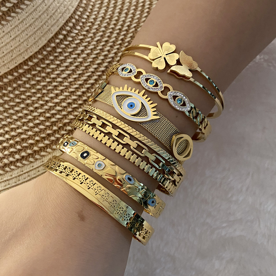 Bracelet en acier inoxydable, Acier inoxydable 304, styles différents pour le choix & pour femme & émail, doré, 60x50mm, Vendu par PC
