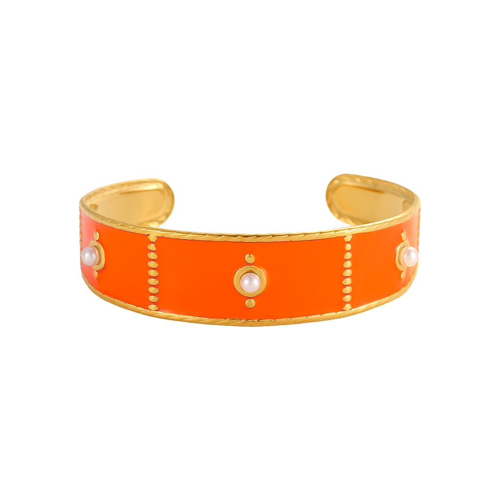 Bracelet en acier inoxydable, Acier inoxydable 304, avec perle de plastique, Placage de couleur d'or, bijoux de mode & émail, plus de couleurs à choisir, Vendu par PC