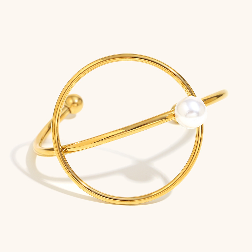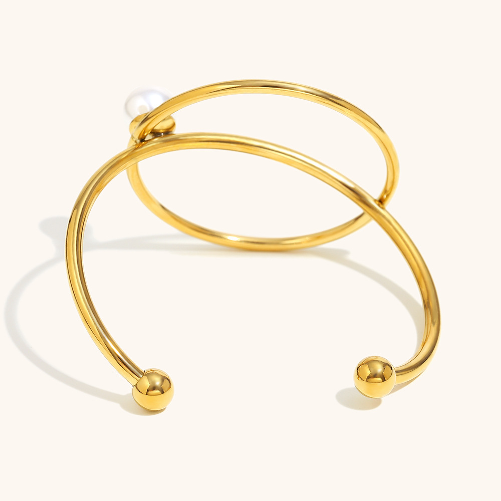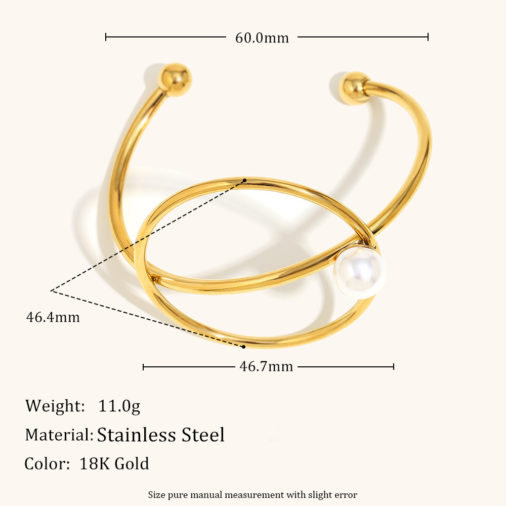 Bracelet en acier inoxydable, Acier inoxydable 304, avec perle de plastique, Plaqué or 18K, bijoux de mode & pour femme & creux, Vendu par PC