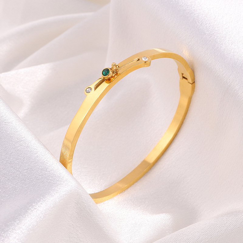 Bracelet en acier inoxydable, Acier inoxydable 304, Placage de couleur d'or, bijoux de mode & pavé de micro zircon, doré, Vendu par PC