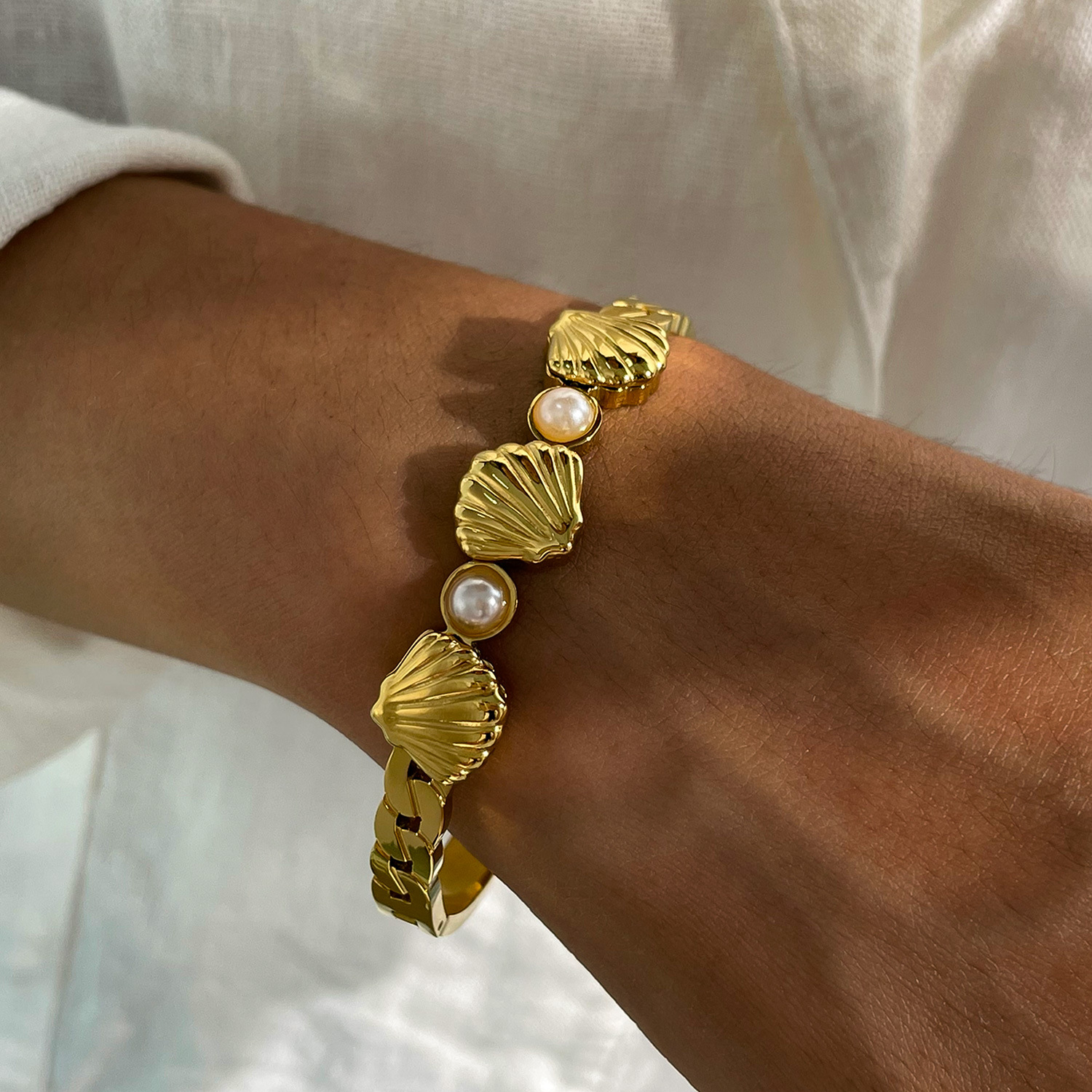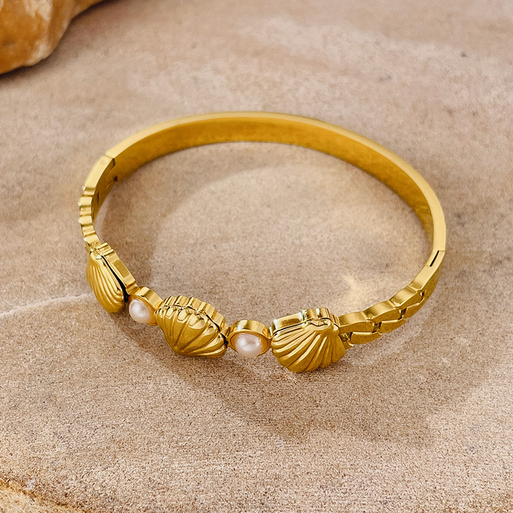 Bracelet en acier inoxydable, Acier inoxydable 304, avec Plastique ABS perle, Placage de couleur d'or, bijoux de mode & modèles différents pour le choix, doré, Vendu par PC