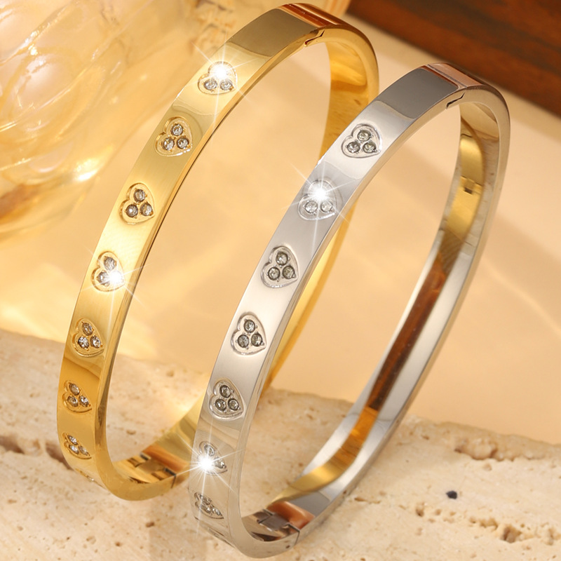 Bracelet en acier inoxydable, Acier inoxydable 304, Plaqué or 18K, styles différents pour le choix & pour femme & avec strass, Vendu par PC