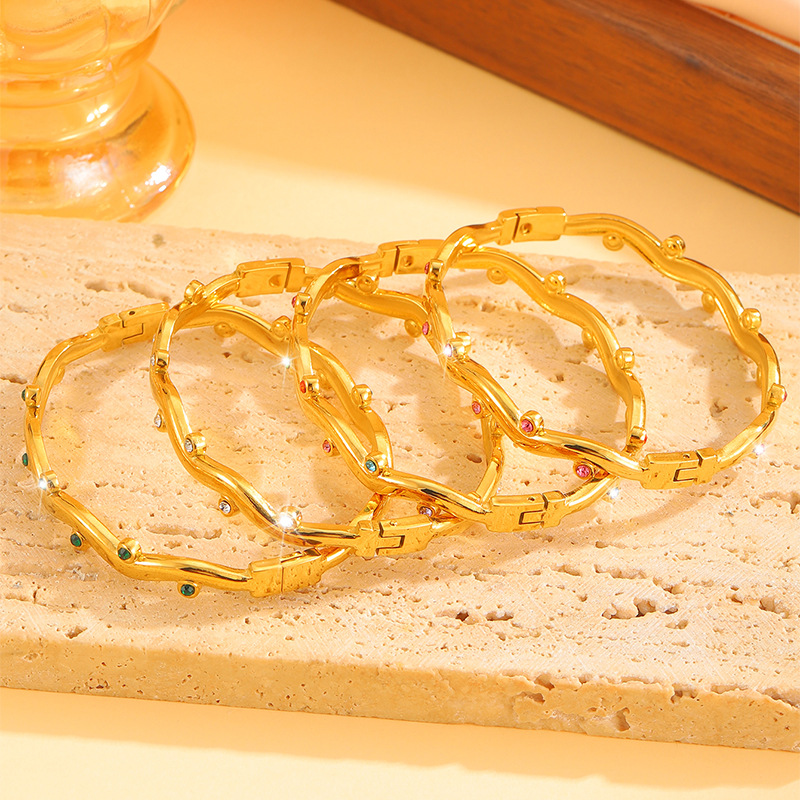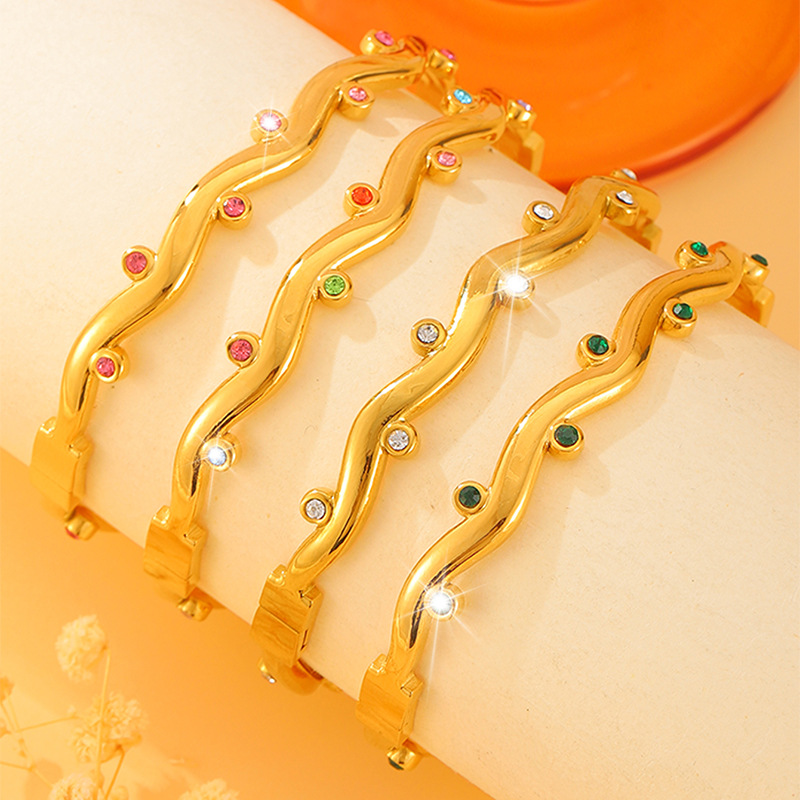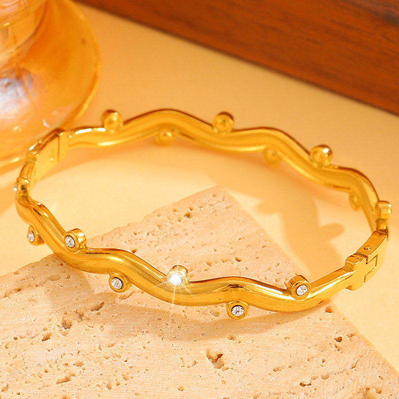 Bracelet en acier inoxydable, Acier inoxydable 304, Plaqué or 18K, styles différents pour le choix & pour femme & avec strass, Vendu par PC