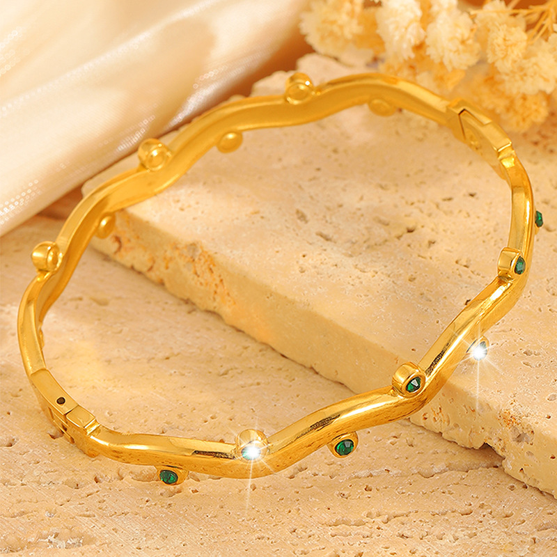 Bracelet en acier inoxydable, Acier inoxydable 304, Placage de couleur d'or, bijoux de mode & pavé de micro zircon, doré, Vendu par PC