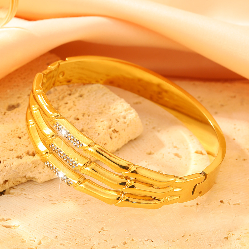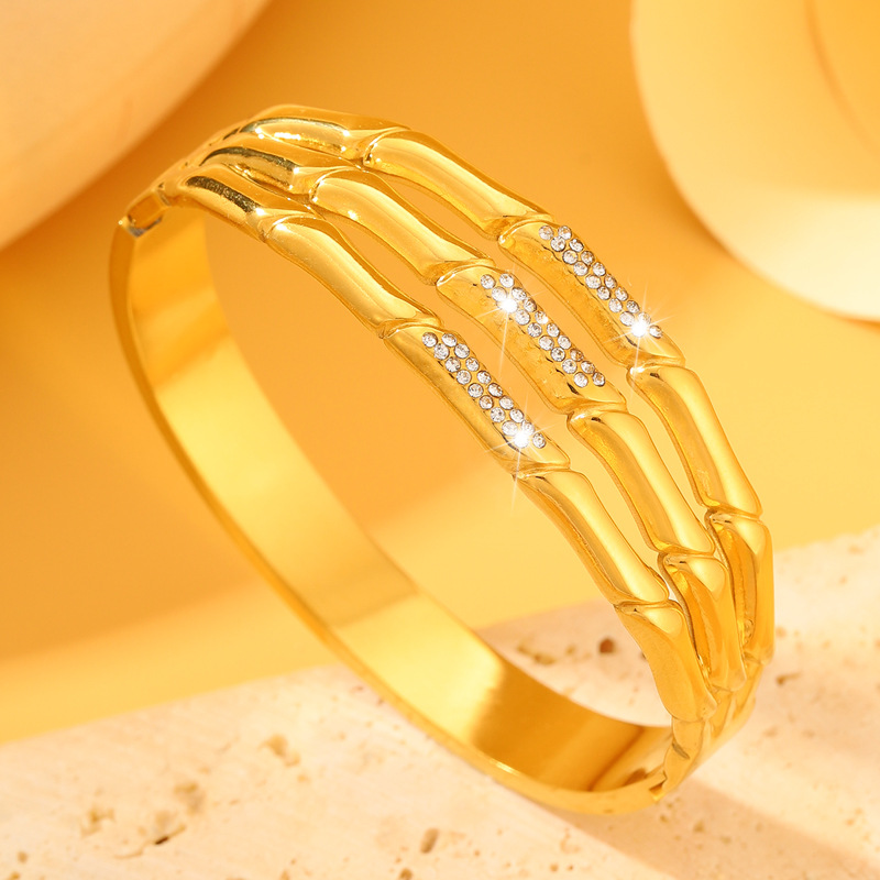 Bracelet en acier inoxydable, Acier inoxydable 304, Plaqué or 18K, pour femme & avec strass & creux, Vendu par PC