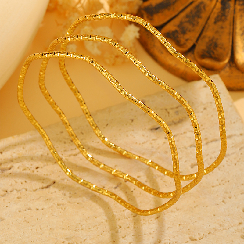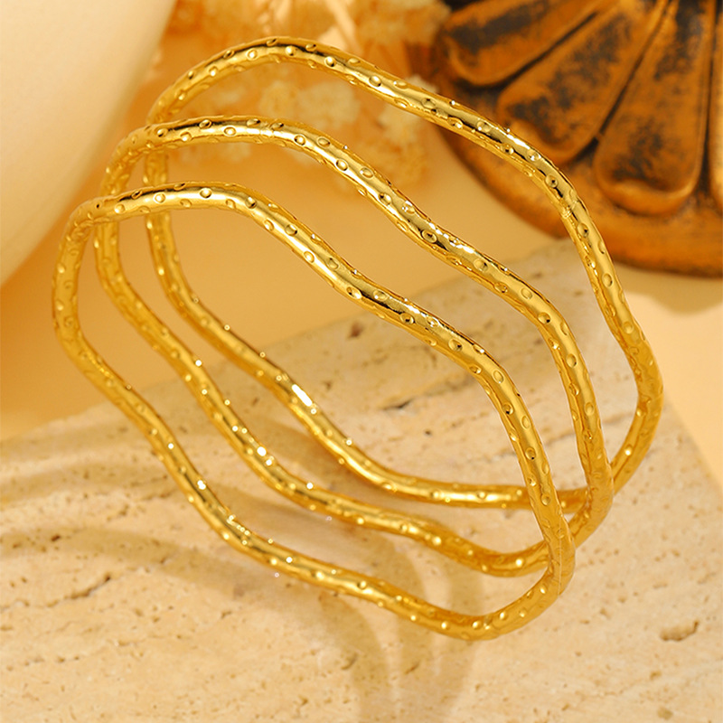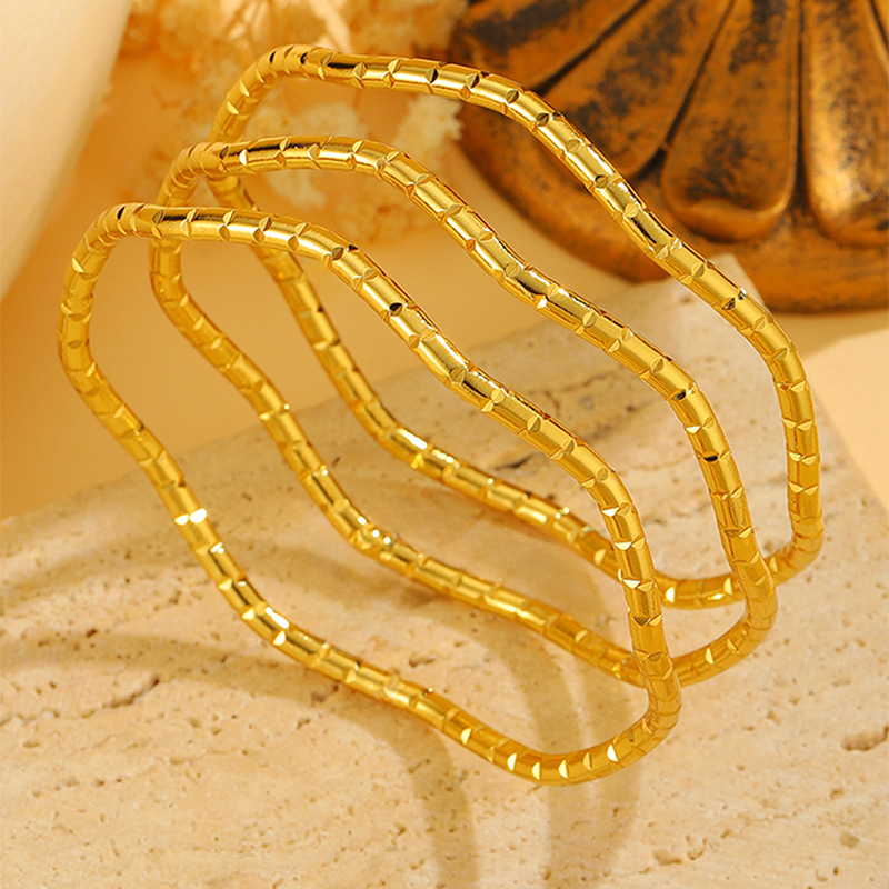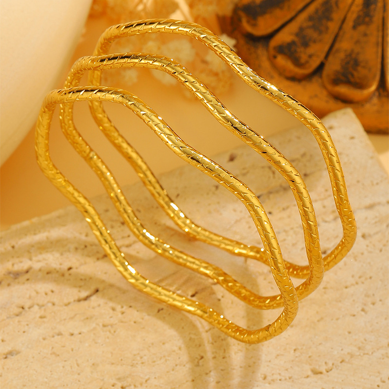 Bracelet en acier inoxydable, Acier inoxydable 304, Placage, trois pièces & modèles différents pour le choix & pour femme, doré, Vendu par fixé