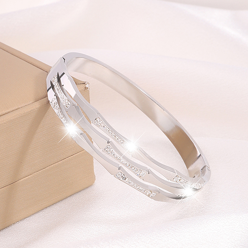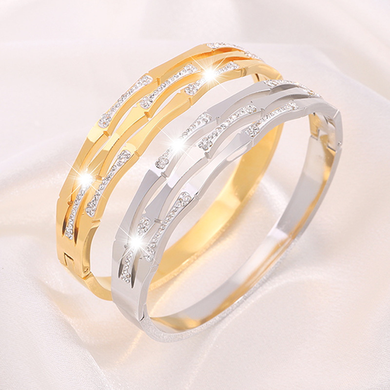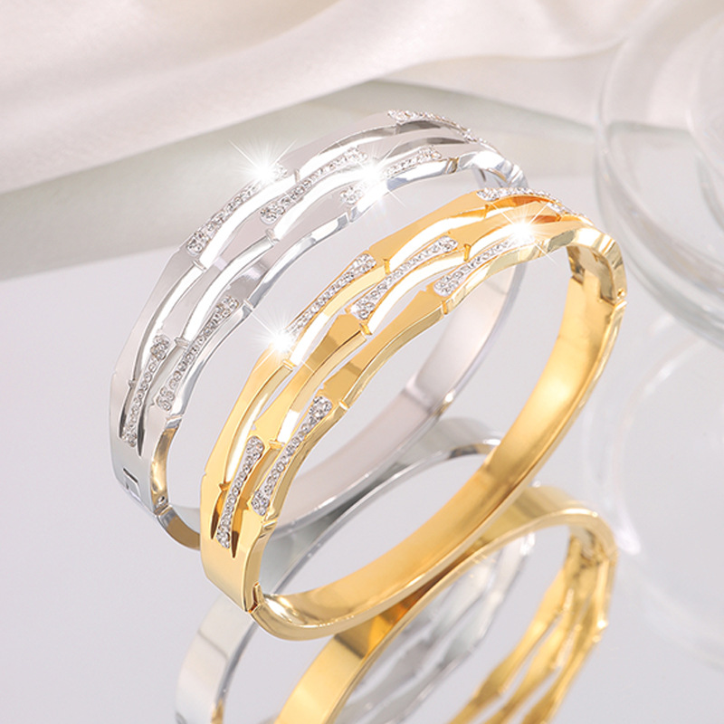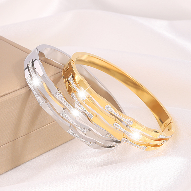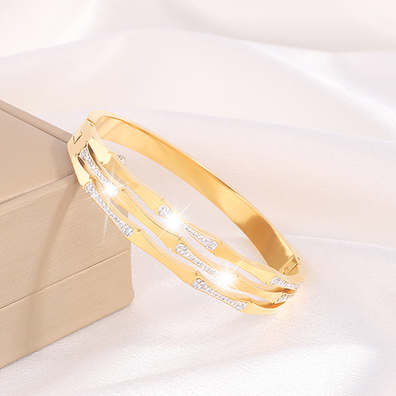 Bracelet en acier inoxydable, Acier inoxydable 304, Plaqué or 18K, styles différents pour le choix & pour femme & avec strass, Vendu par PC