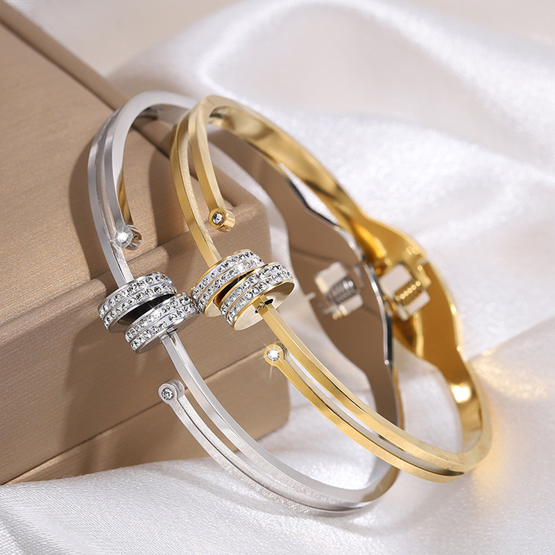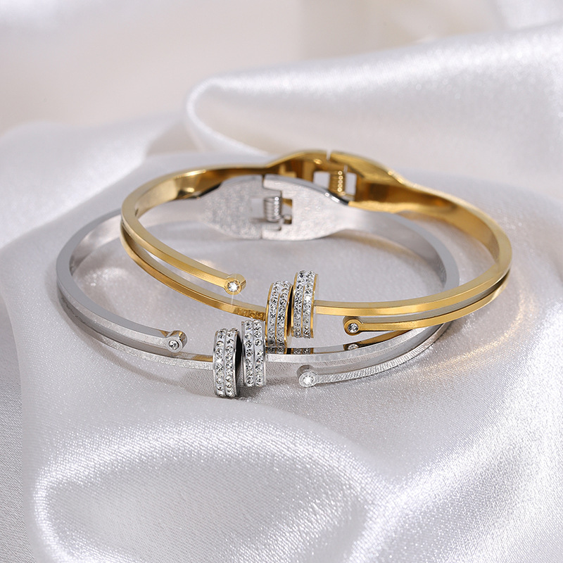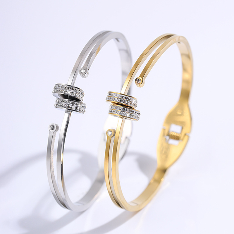 Bracelet en acier inoxydable, Acier inoxydable 304, Plaqué or 18K, styles différents pour le choix & pour femme & avec strass, Vendu par PC