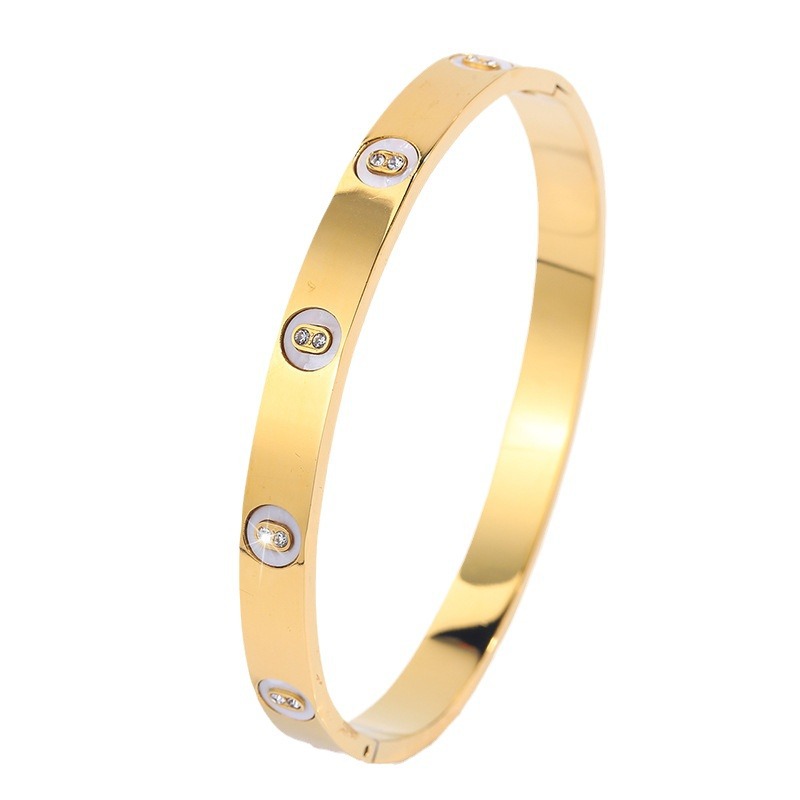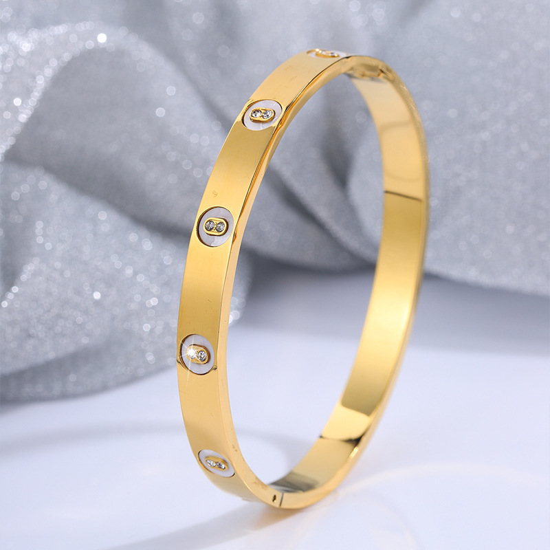 Bracelet en acier inoxydable, Acier inoxydable 304, avec coquille blanche, Plaqué d'or 18K, bijoux de mode & pour femme & avec strass, Vendu par PC