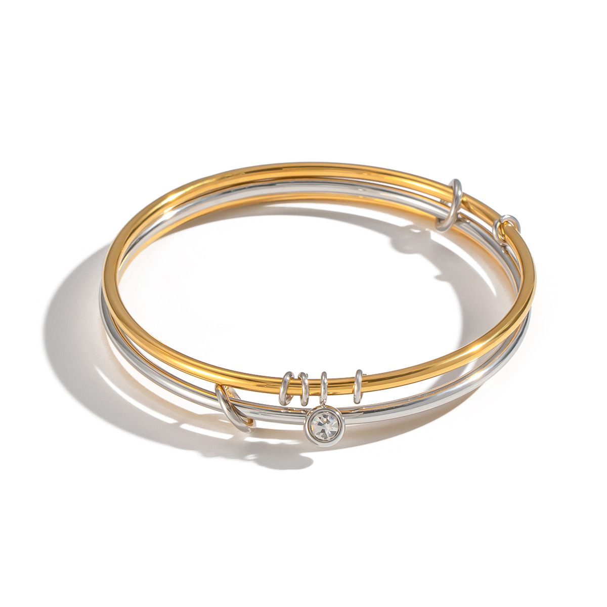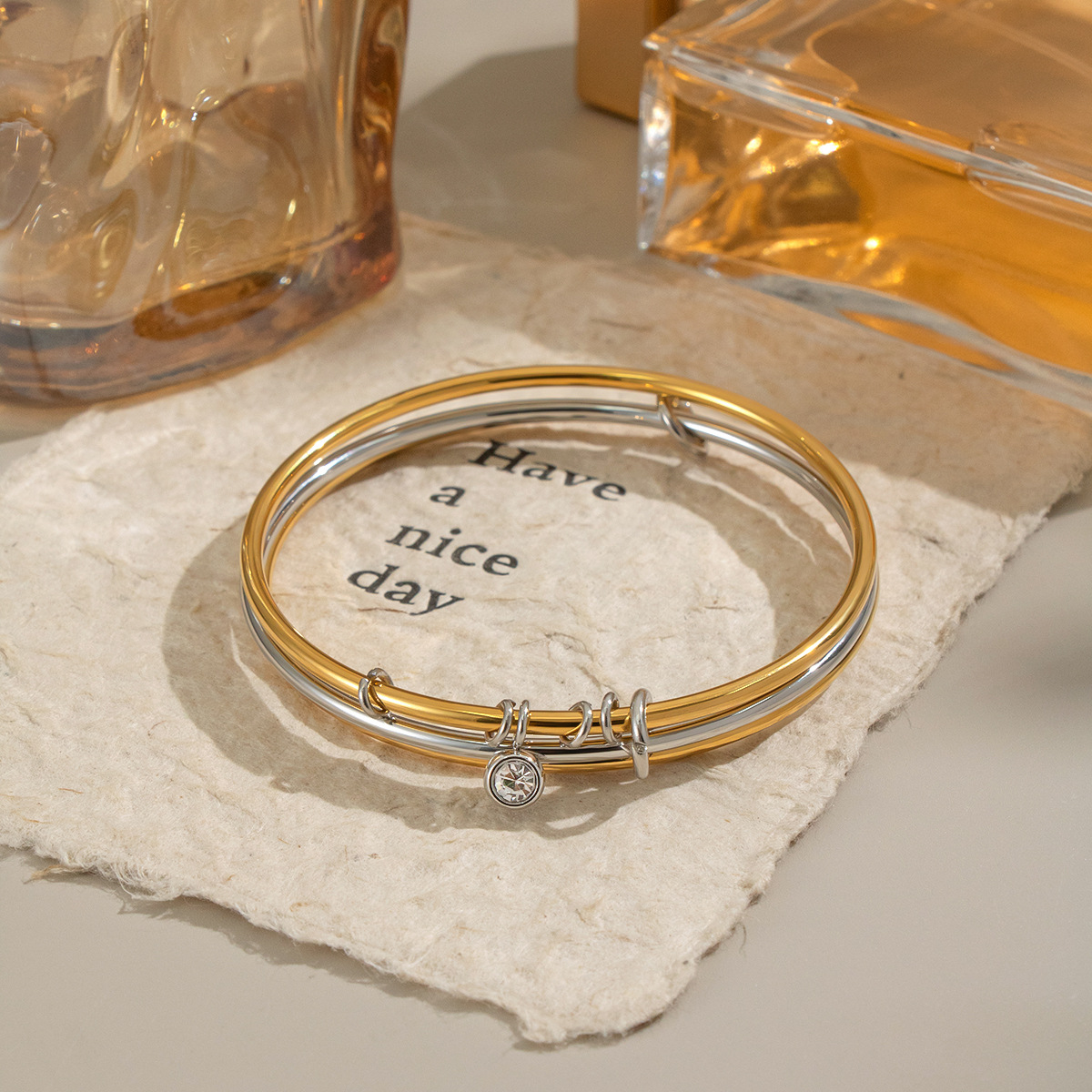 Bracelet en acier inoxydable, Acier inoxydable 304, Placage, trois couches & pavé de micro zircon & pour femme & deux tons, Vendu par PC