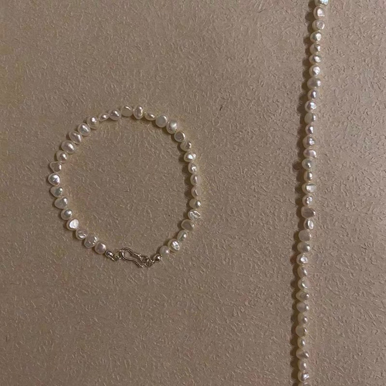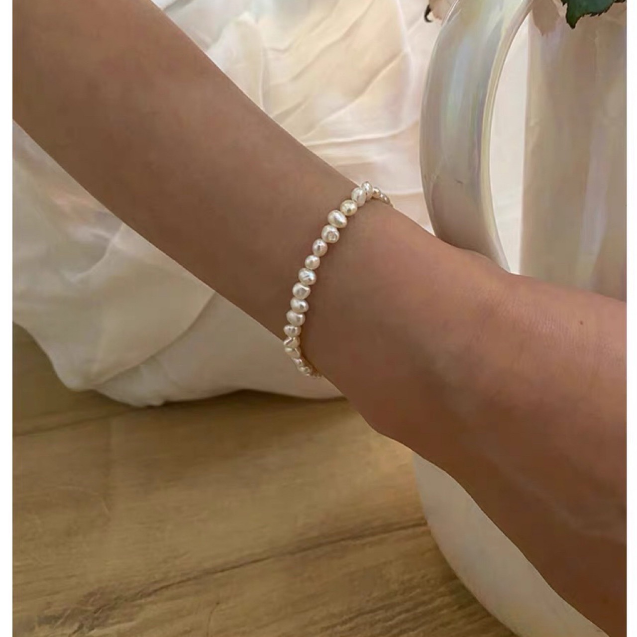 Bracelet en perles de culture d'eau douce, perle d'eau douce cultivée, avec Argent sterling 925 & fil de queue de tigre, Baroque, Placage de couleur d'or, bijoux de mode, blanc, 4x5mm, Vendu par brin