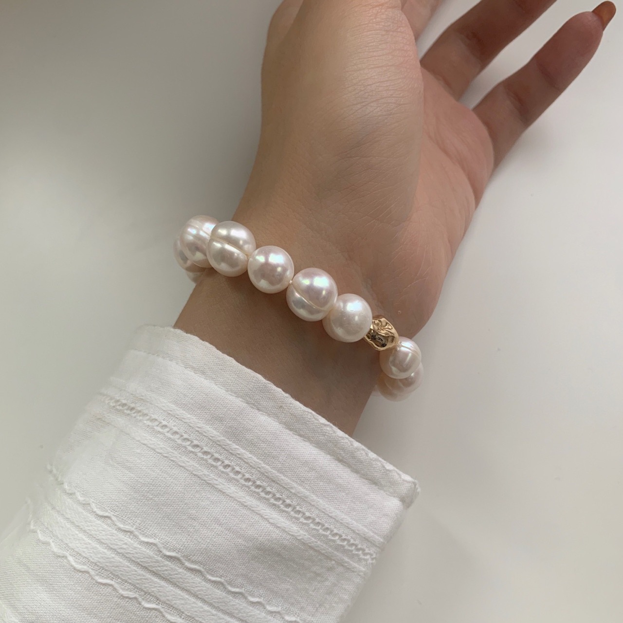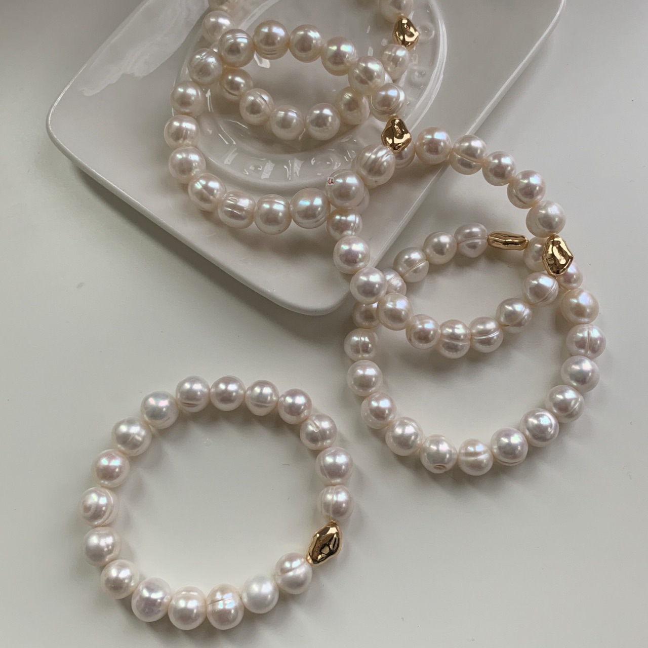 Bracelet en perles de culture d'eau douce, perle d'eau douce cultivée, avec laiton, Baroque, Placage, bijoux de mode, blanc, 8x9mm, Vendu par brin