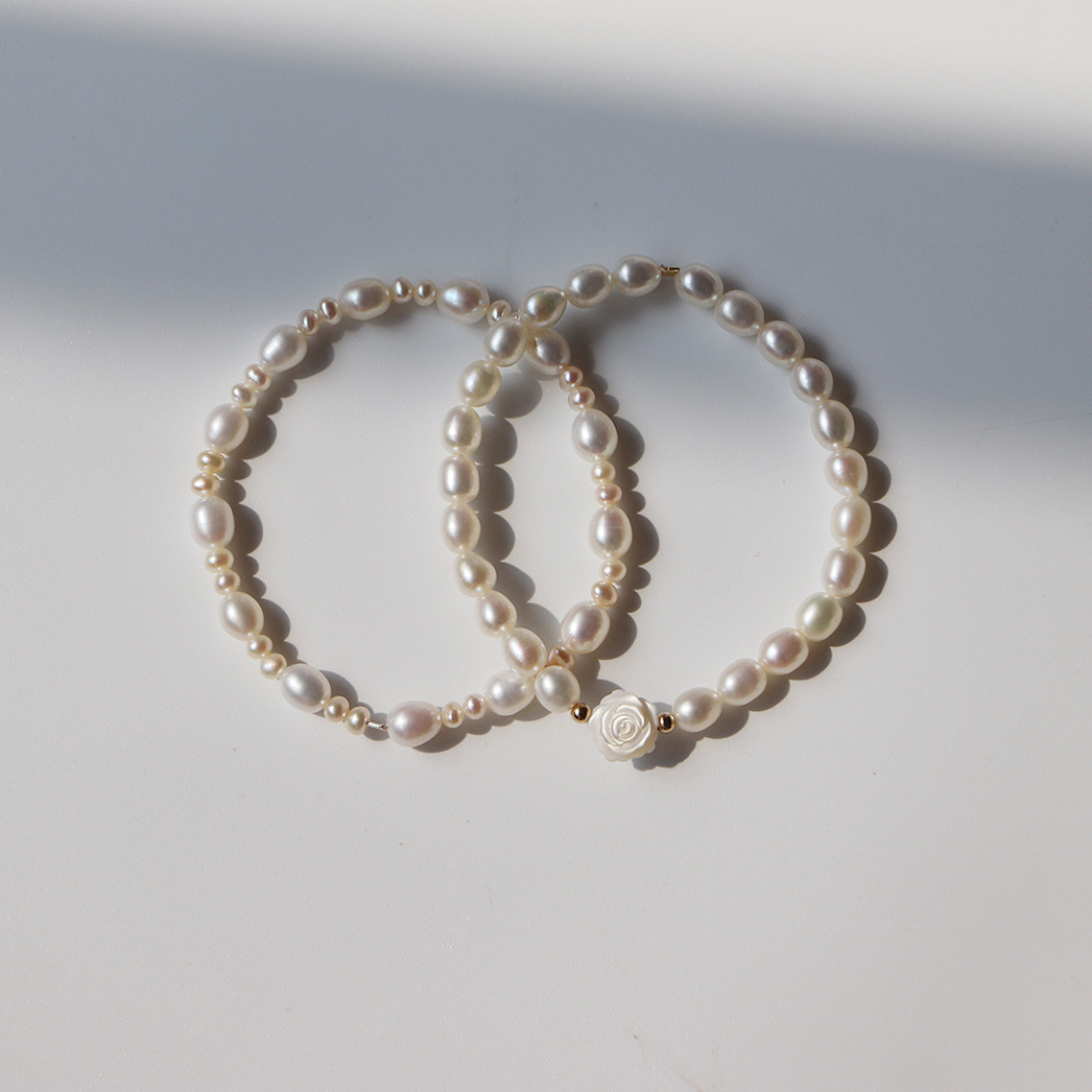 1:Rice capsules   small capsules freshwater pearl bracelet2:Rice capsules freshwater pearls shell rose bracelet