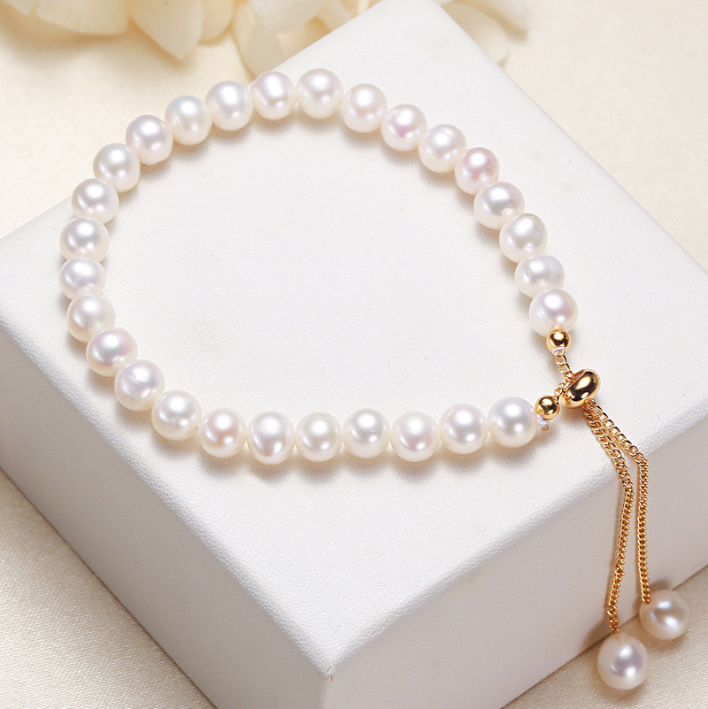 Bracelet en perles de culture d'eau douce, perle d'eau douce cultivée, avec laiton, Légèrement rond, Placage, bijoux de mode, plus de couleurs à choisir, 5x6mm, Vendu par brin