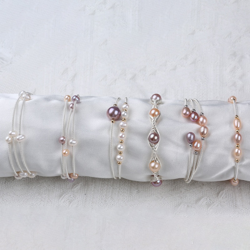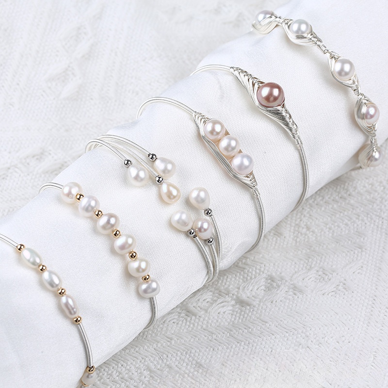 Bracelet en perles de culture d'eau douce, perle d'eau douce cultivée, avec fil en laiton, Baroque, Placage de couleur argentée, bijoux de mode, plus de couleurs à choisir, Vendu par brin
