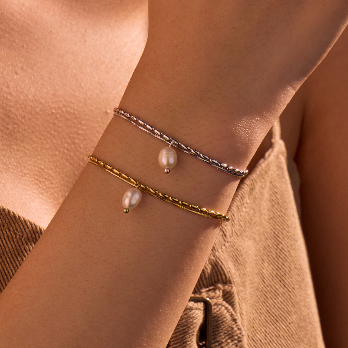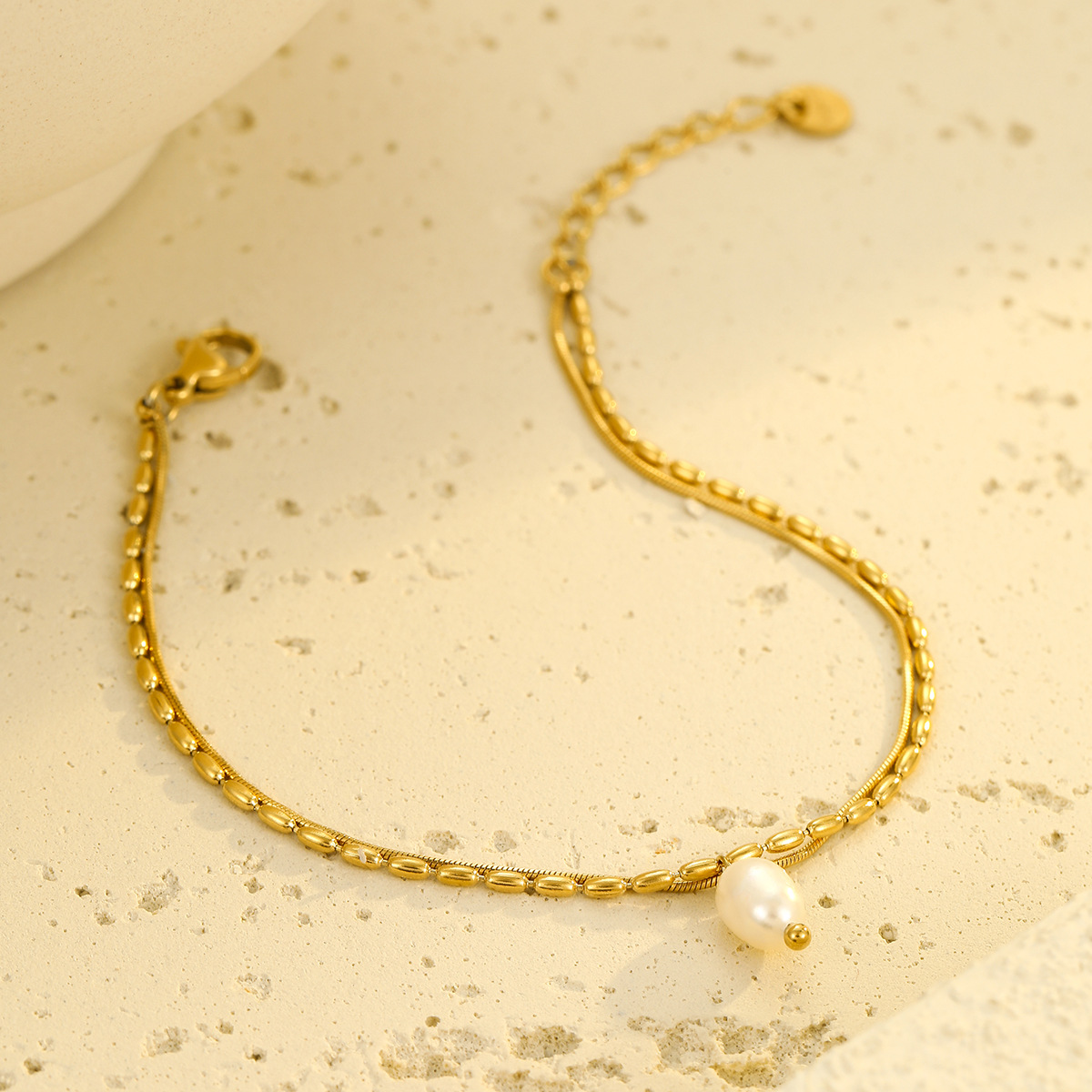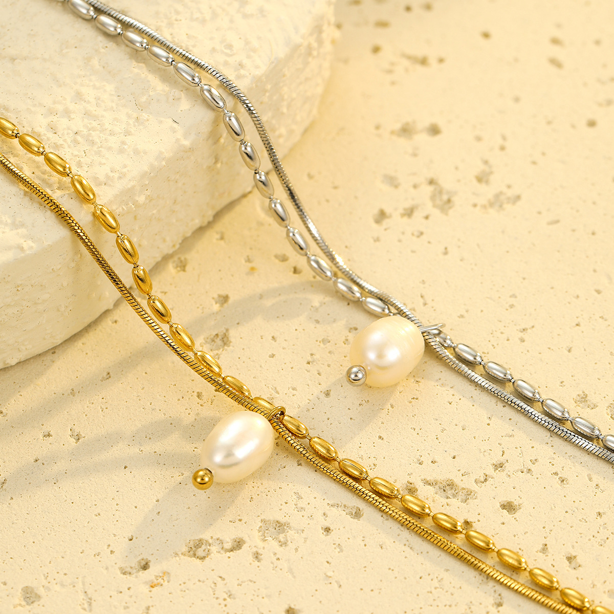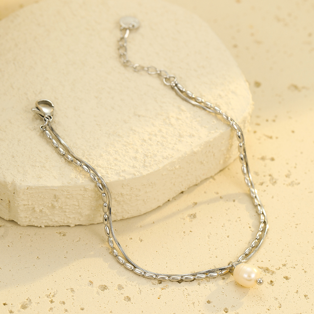 Bracelet en perles de culture d'eau douce, Acier inoxydable 304, avec perle d'eau douce cultivée, Placage, Double couche & bijoux de mode & pour femme, plus de couleurs à choisir, Vendu par PC