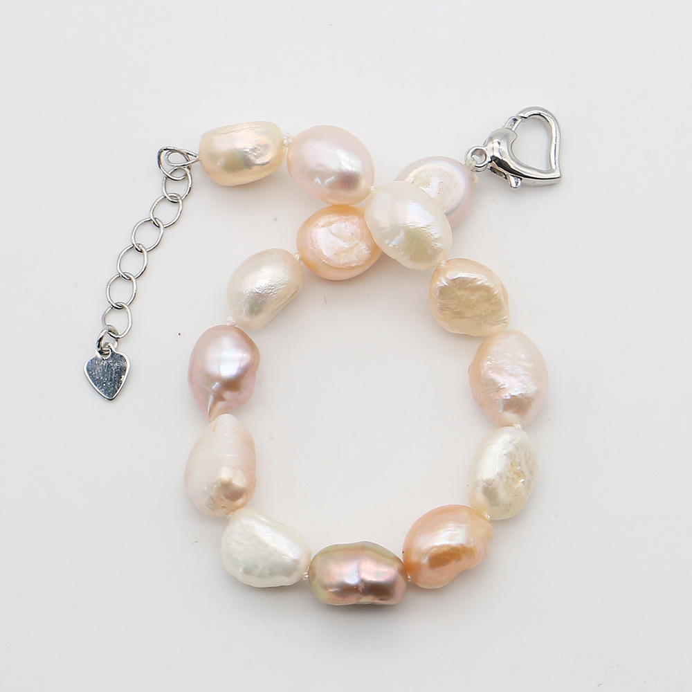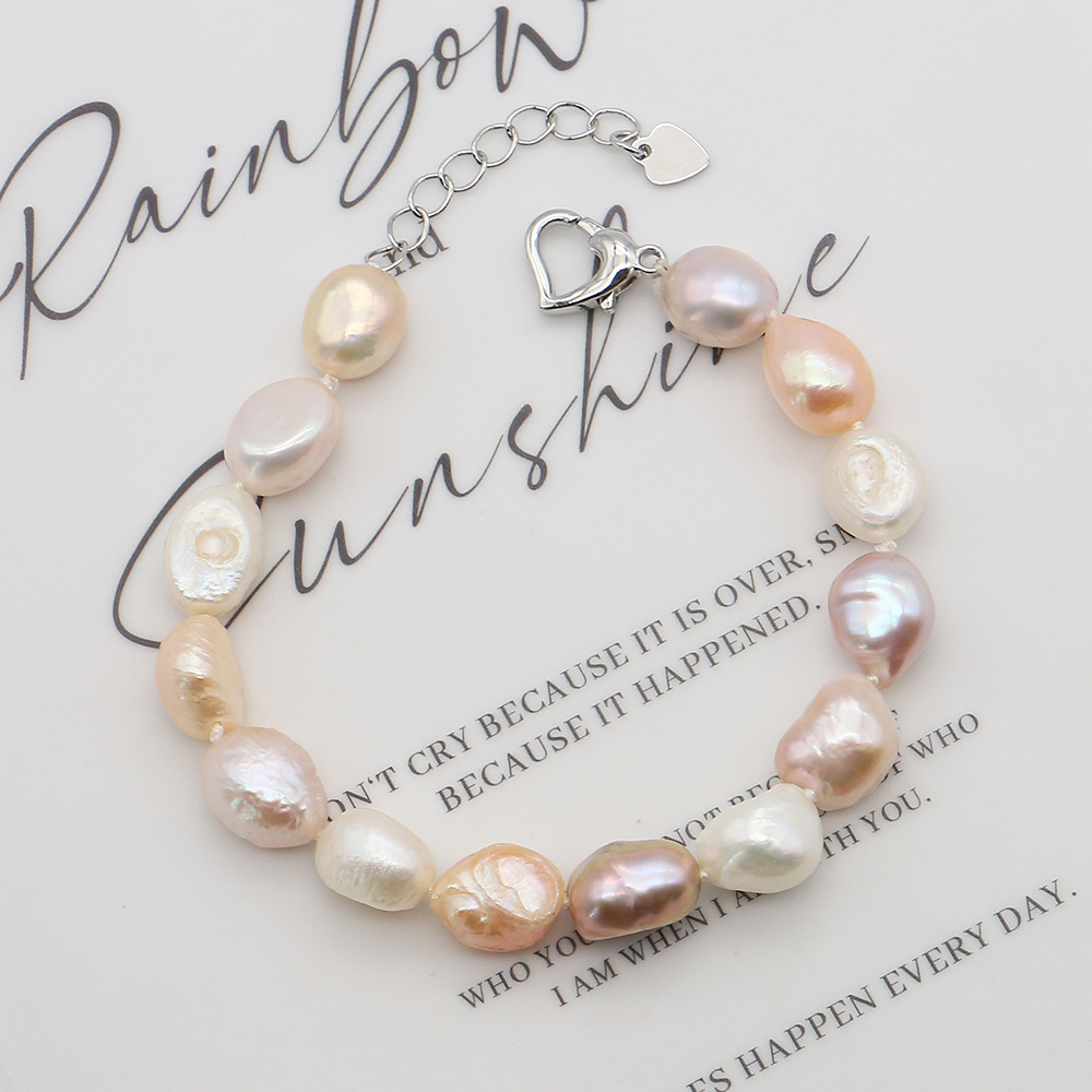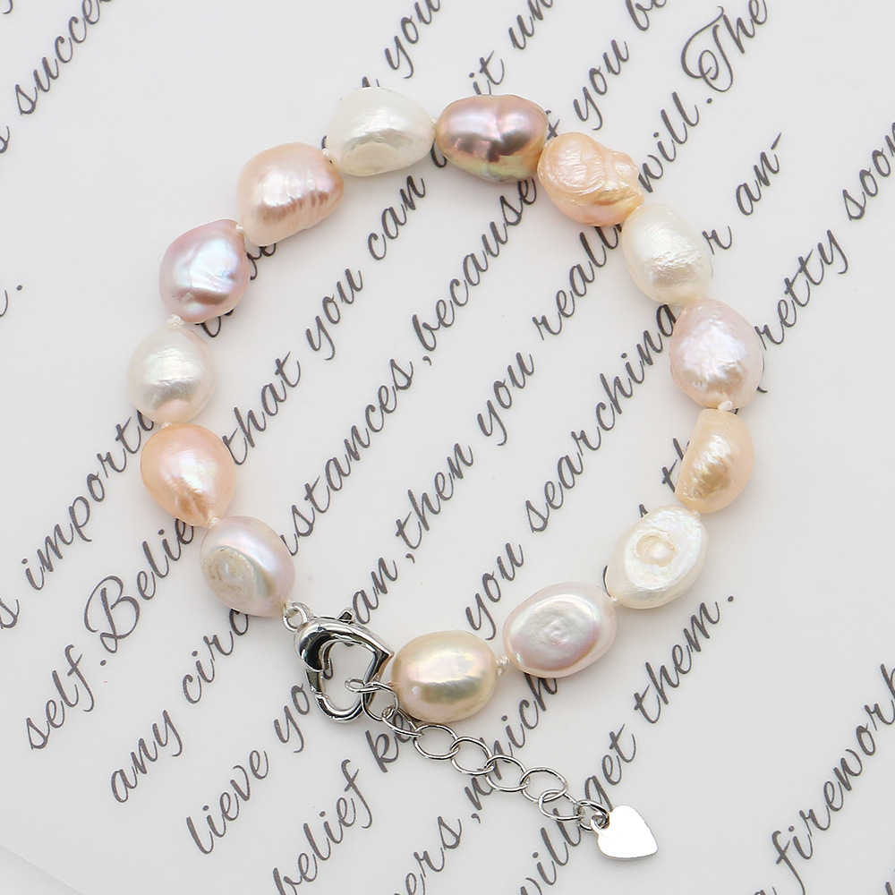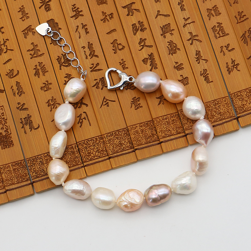 Bracelet en perles de culture d'eau douce, perle d'eau douce cultivée, avec Acier inoxydable 304, Baroque, bijoux de mode, couleurs mélangées, 9-10mm, Vendu par 17 cm brin