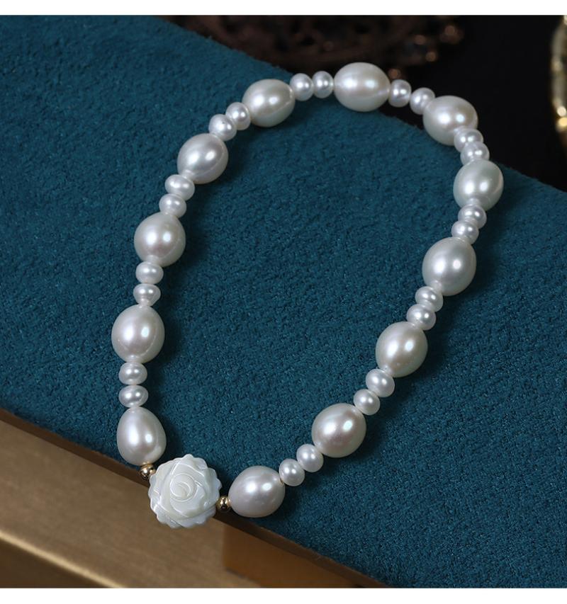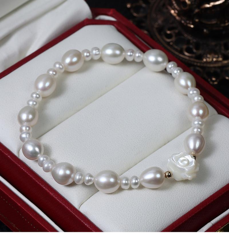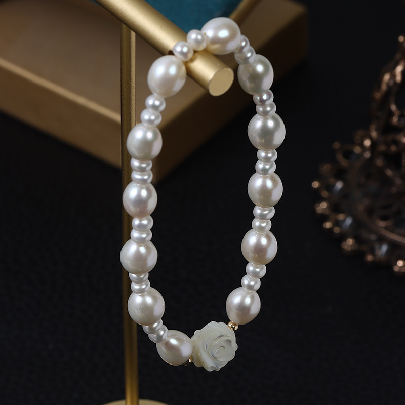 Bracelet en perles de culture d'eau douce, perle d'eau douce cultivée, avec coquille, Baroque, bijoux de mode, blanc, 6-7mm, Longueur 17 cm, Vendu par PC