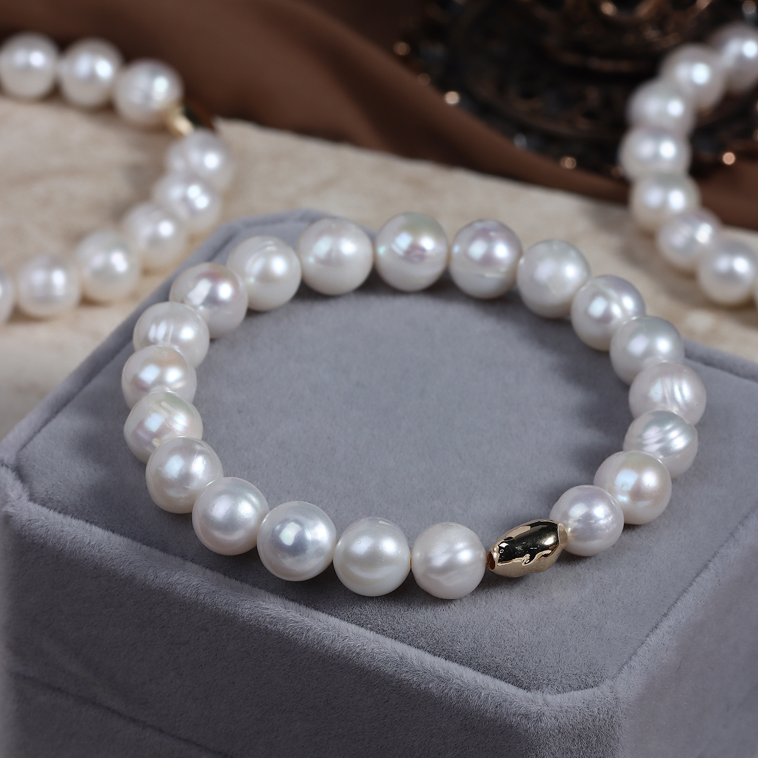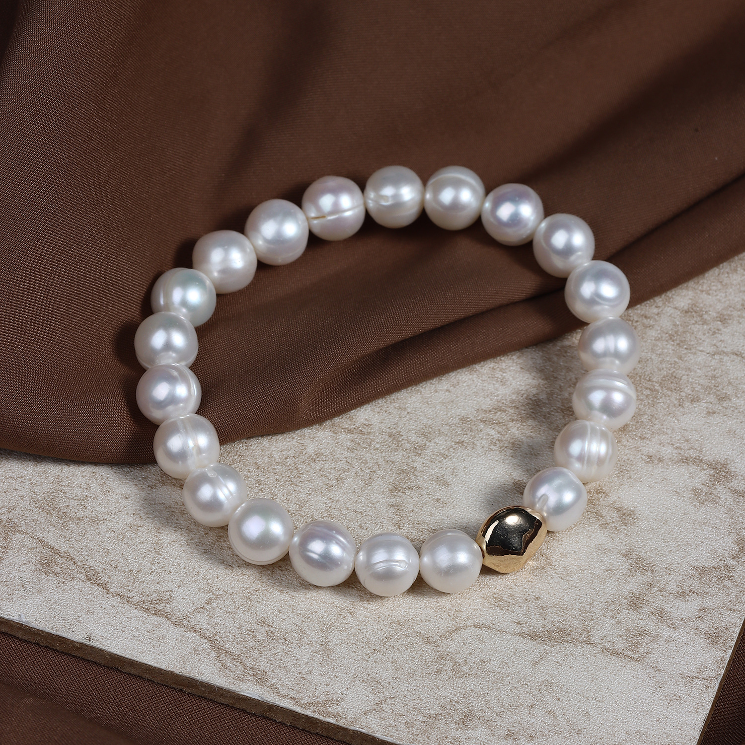 Bracelet en perles de culture d'eau douce, perle d'eau douce cultivée, avec laiton, Baroque, bijoux de mode, blanc, 9-10mm, Longueur 17 cm, Vendu par PC
