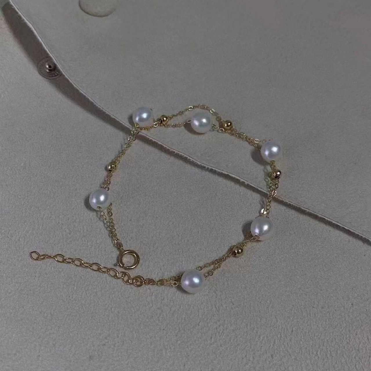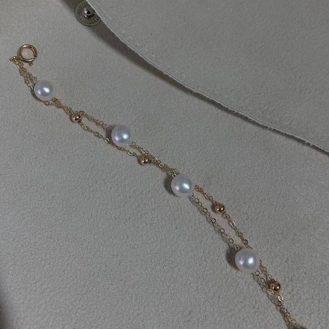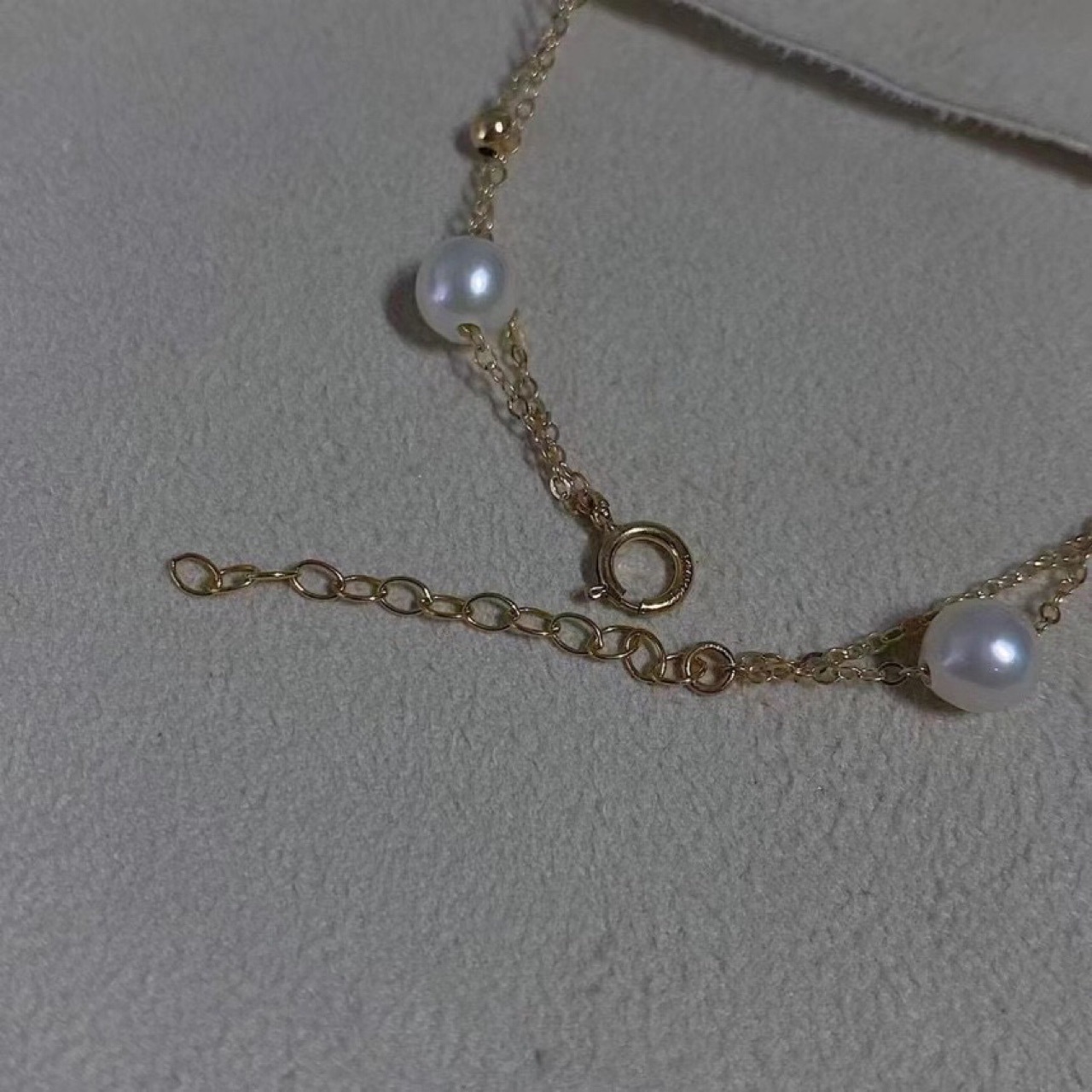 Bracelet en perles de culture d'eau douce, argent sterling 925, avec perle d'eau douce cultivée, Légèrement rond, Placage de couleur d'or, bijoux de mode, plus de couleurs à choisir, 6-7mm, Vendu par PC
