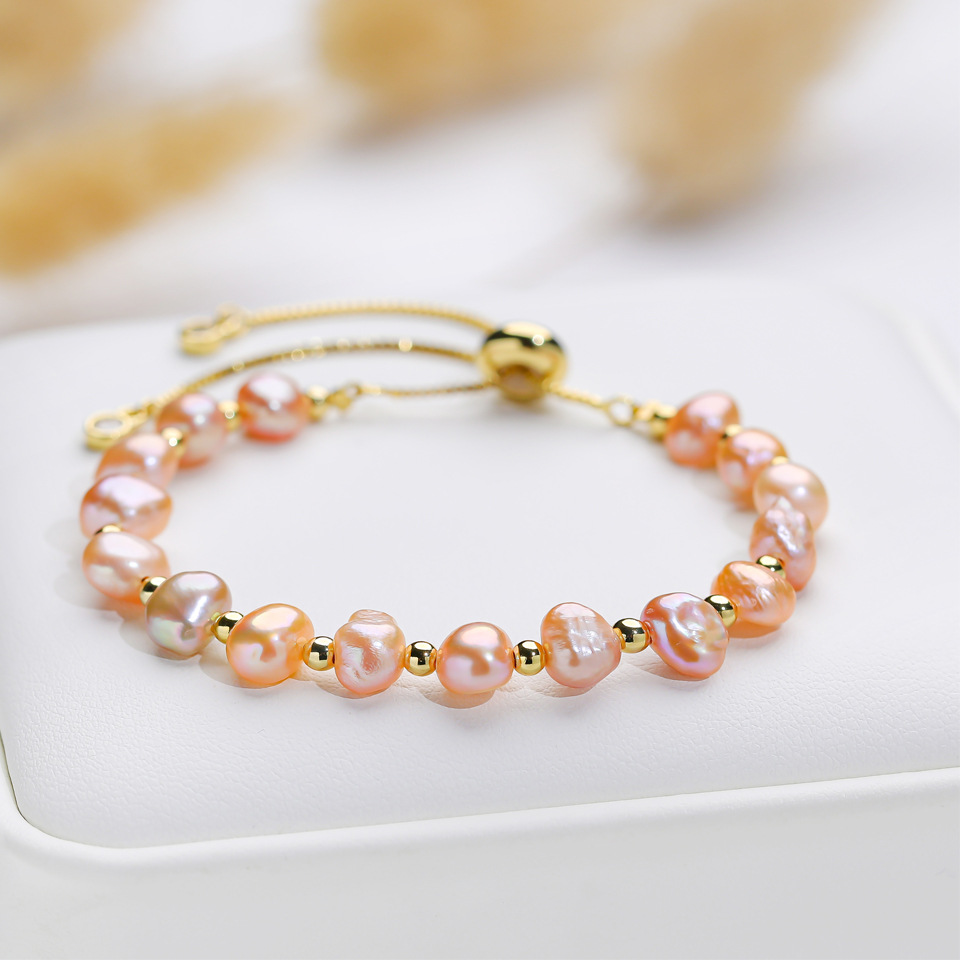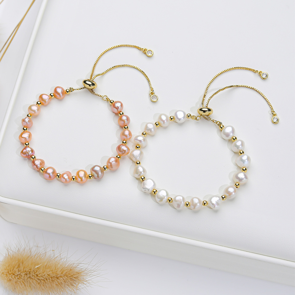 Bracelet en perles de culture d'eau douce, perle d'eau douce cultivée, avec laiton, Baroque, Placage de couleur d'or, bijoux de mode, plus de couleurs à choisir, 6-7mm, Vendu par PC