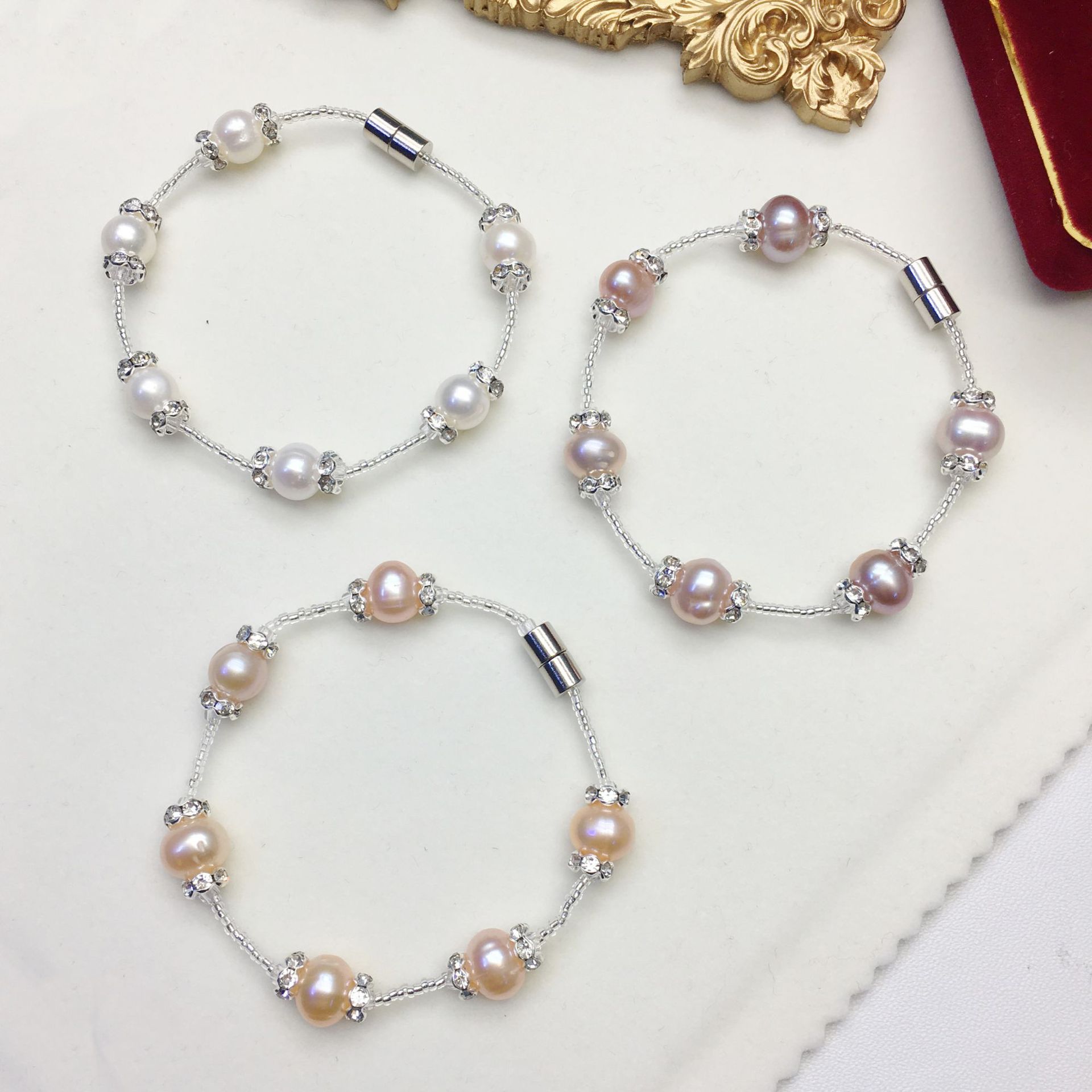 1:Purple-natural freshwater near round pearl magnet bracelet2:White-natural freshwater nearly round pearl magnet clasp bracelet3:Pink-natural freshwater near-round pearl magnet bracelet