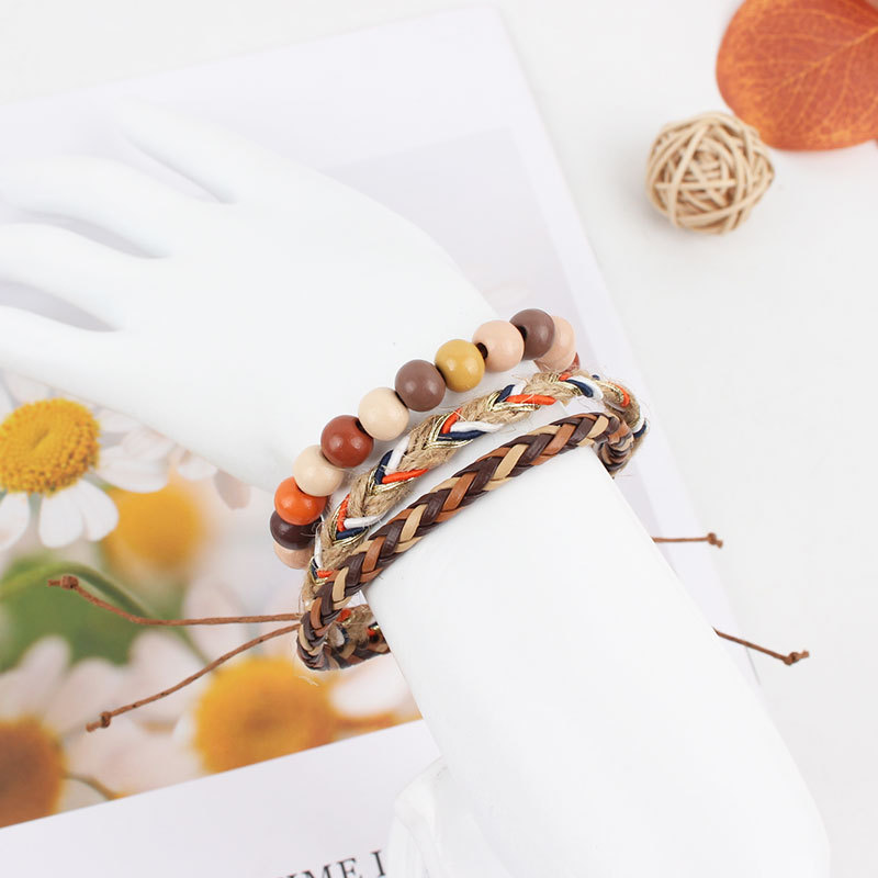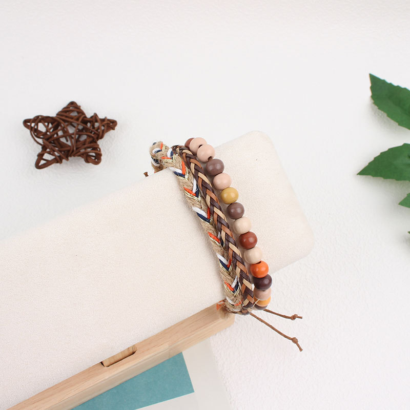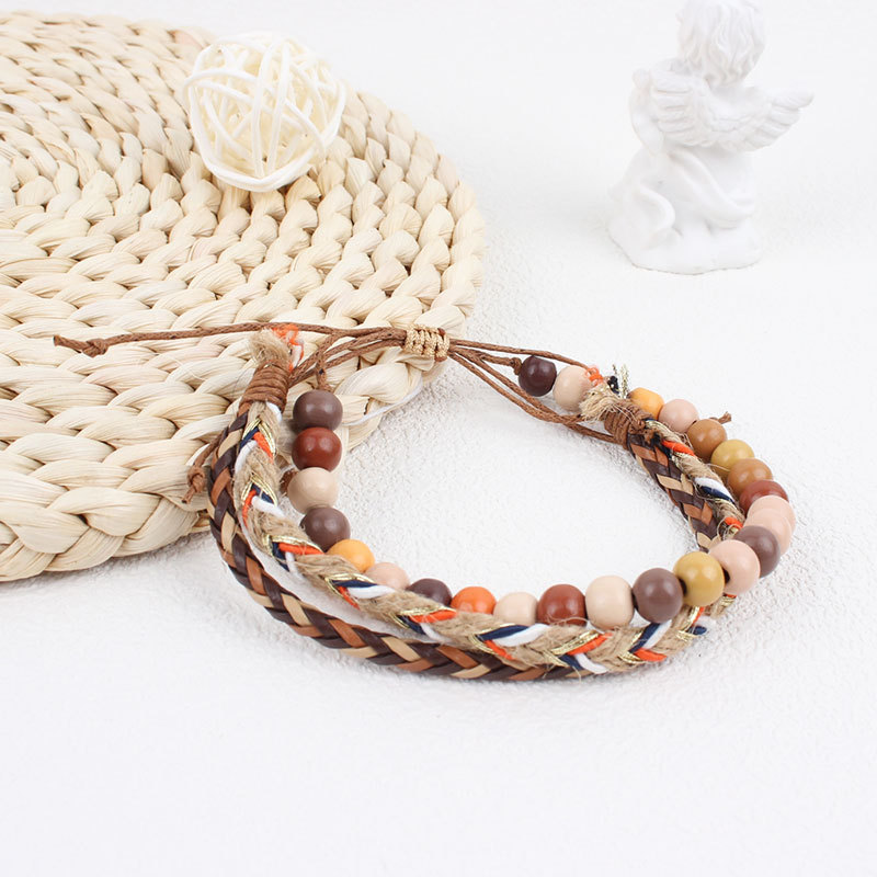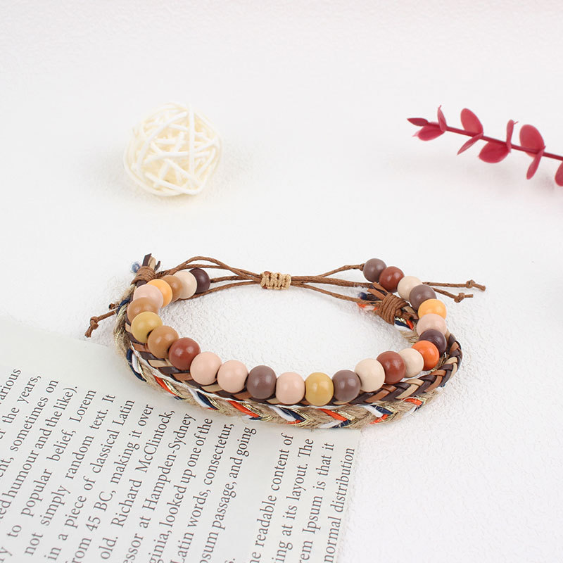 Bracelets Acrylique, avec Chanvre & cuir PU & corde de cire, bijoux de mode, couleurs mélangées, Vendu par PC