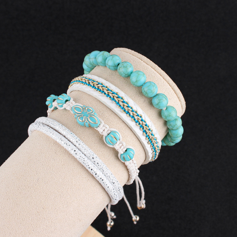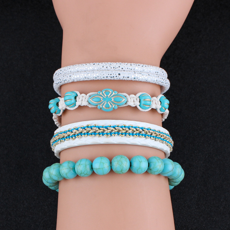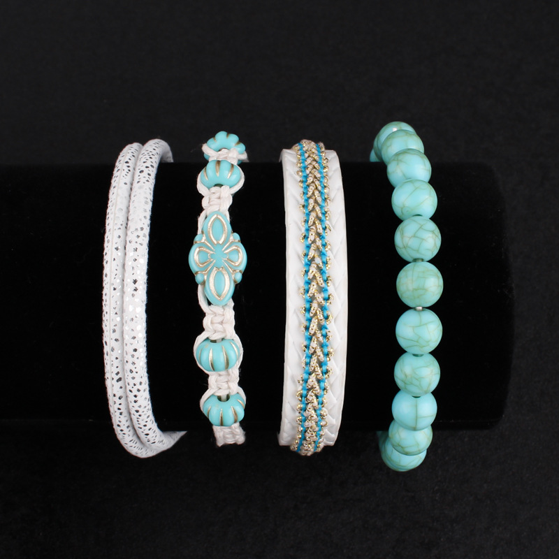 1:Adjustable White PU bracelet2:Adjustable Double-layer PU bracelet3:Acrylic bead bracelet4:Hand-woven adjustable bracelet5:4-piece suit